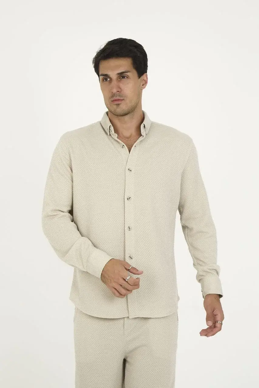 Düğmeli Tam Kalıp Uzun Kol Jakar Gömlek - Gri