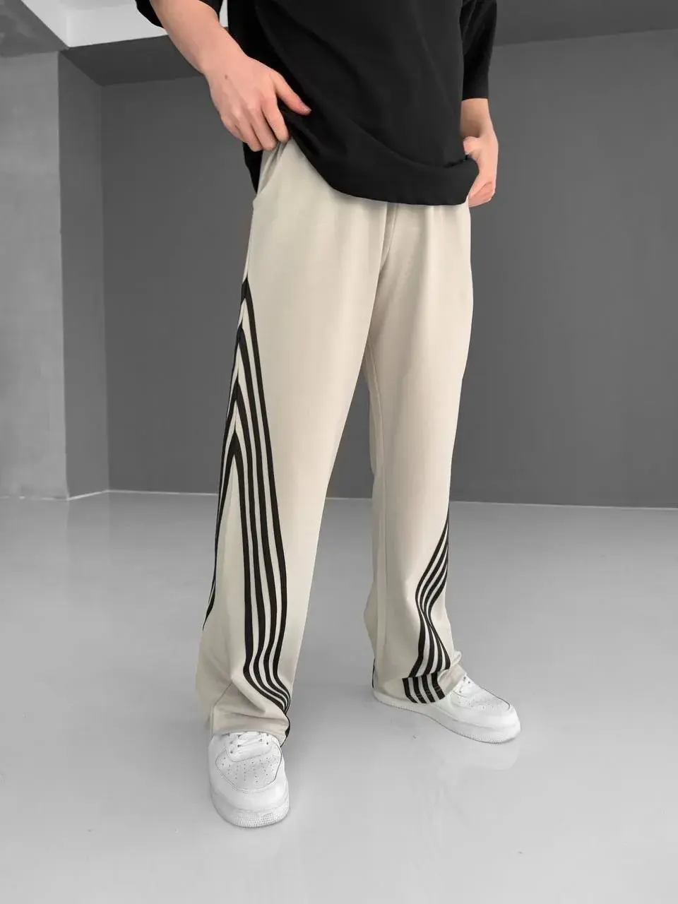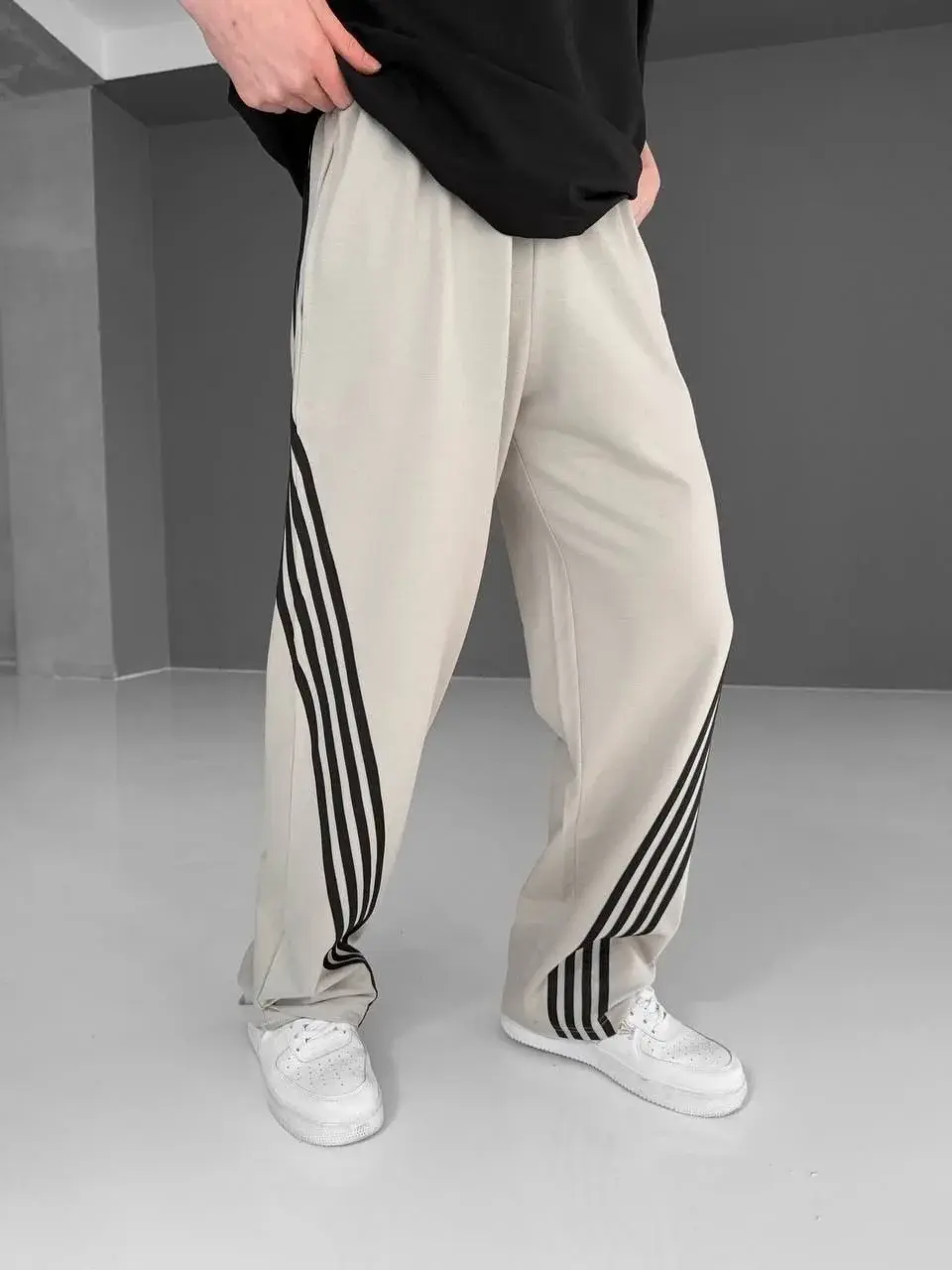 İki İplik Kumaş Şeritli Alt Esofman - Gri