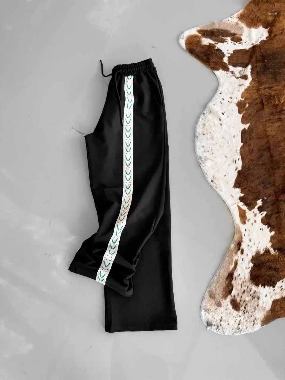 İki İplik Kumaş Şeritli Alt Esofman - Siyah