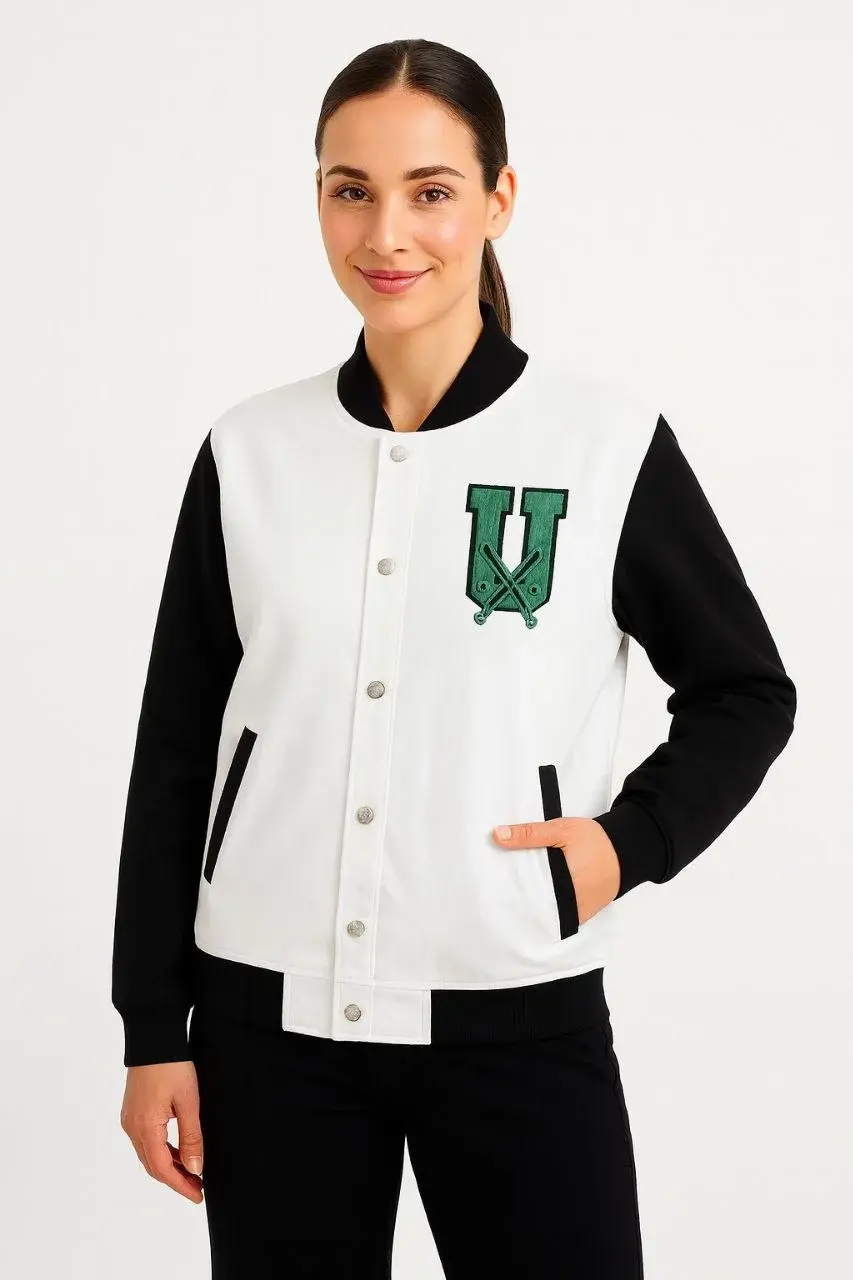 İki İplik Nakış İşlemeli Kolej ceket - Beyaz
