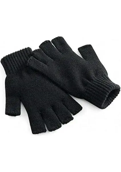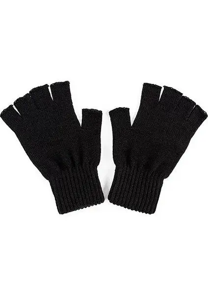 Kadın Kısa Parmaksız Triko Eldiven - Siyah