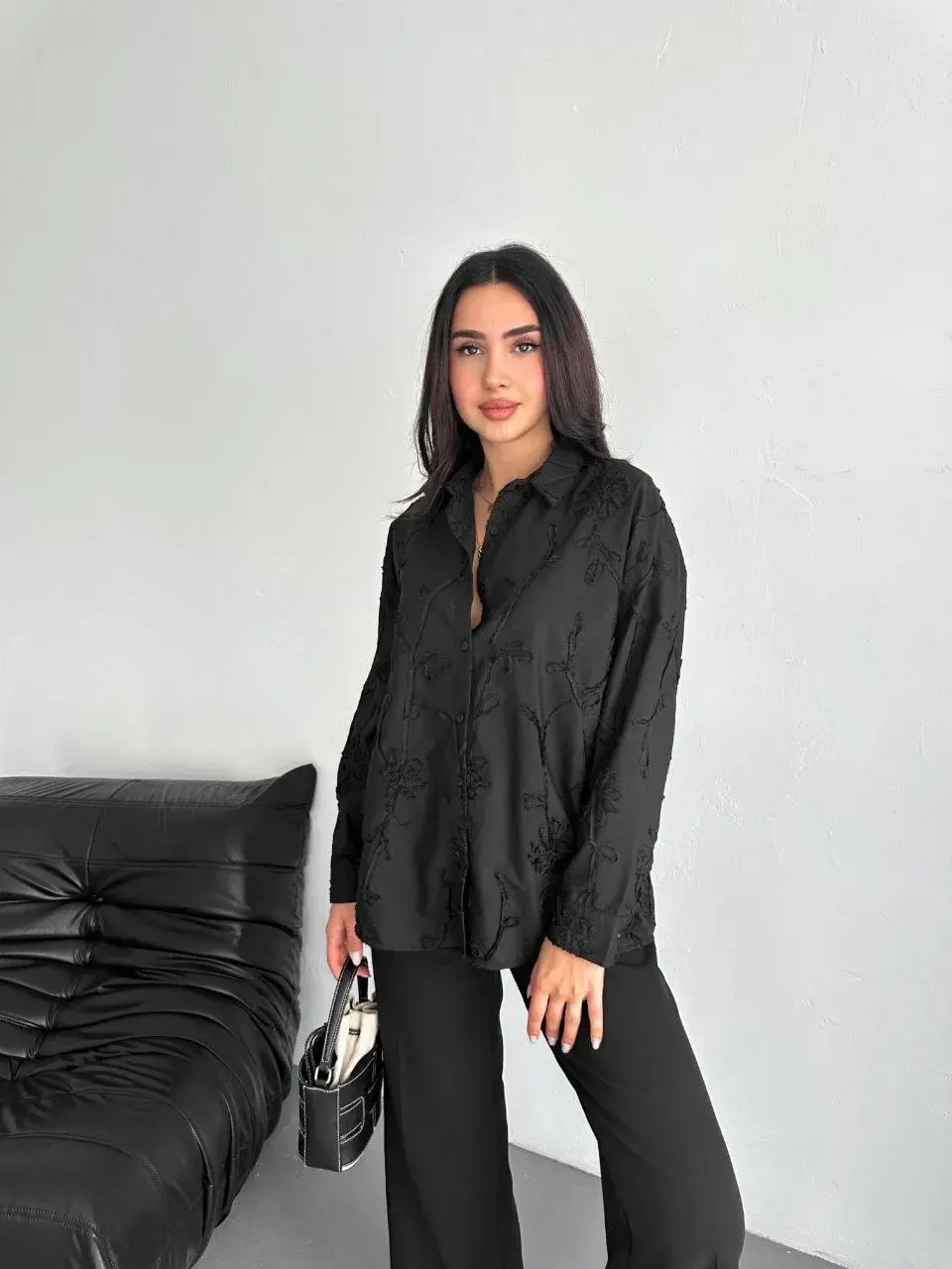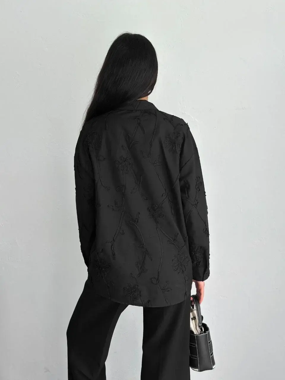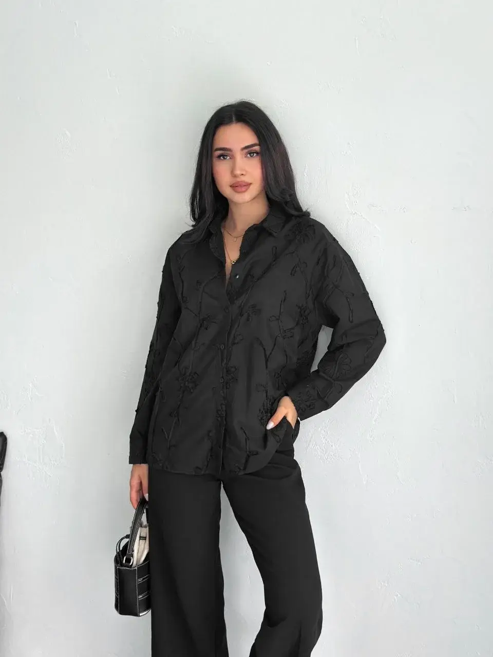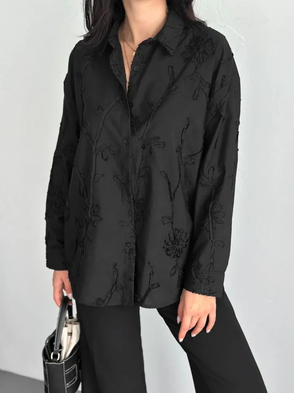 Kadın Nakışlı Uzun Kollu Gömlek - Siyah