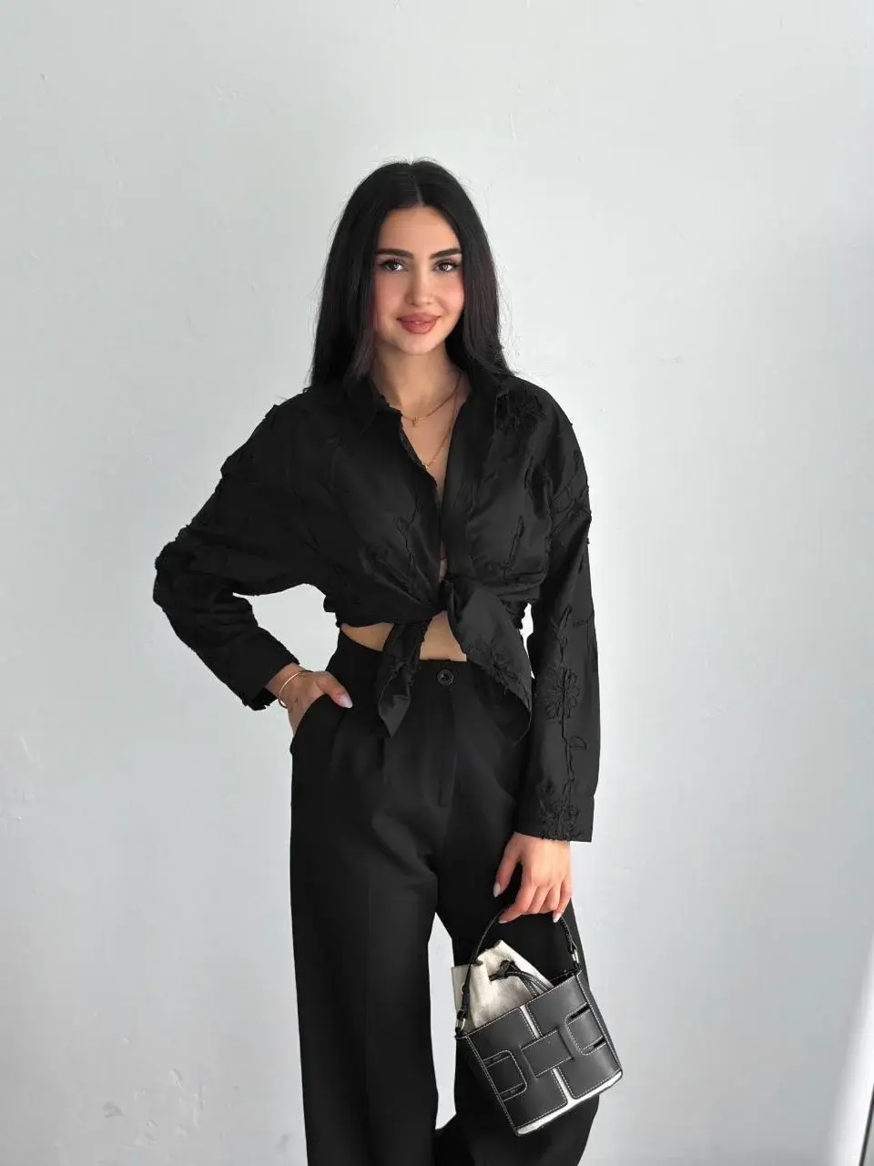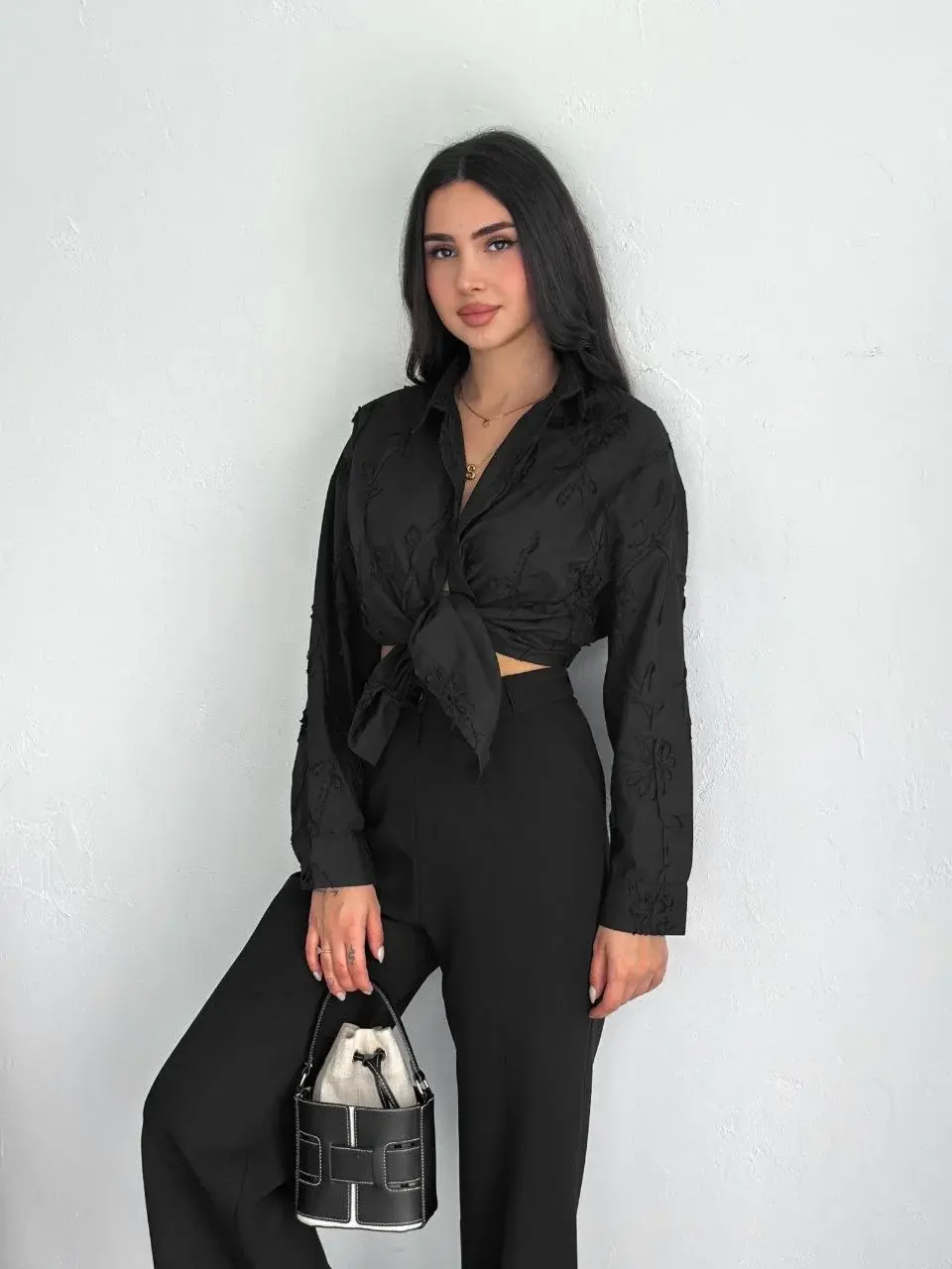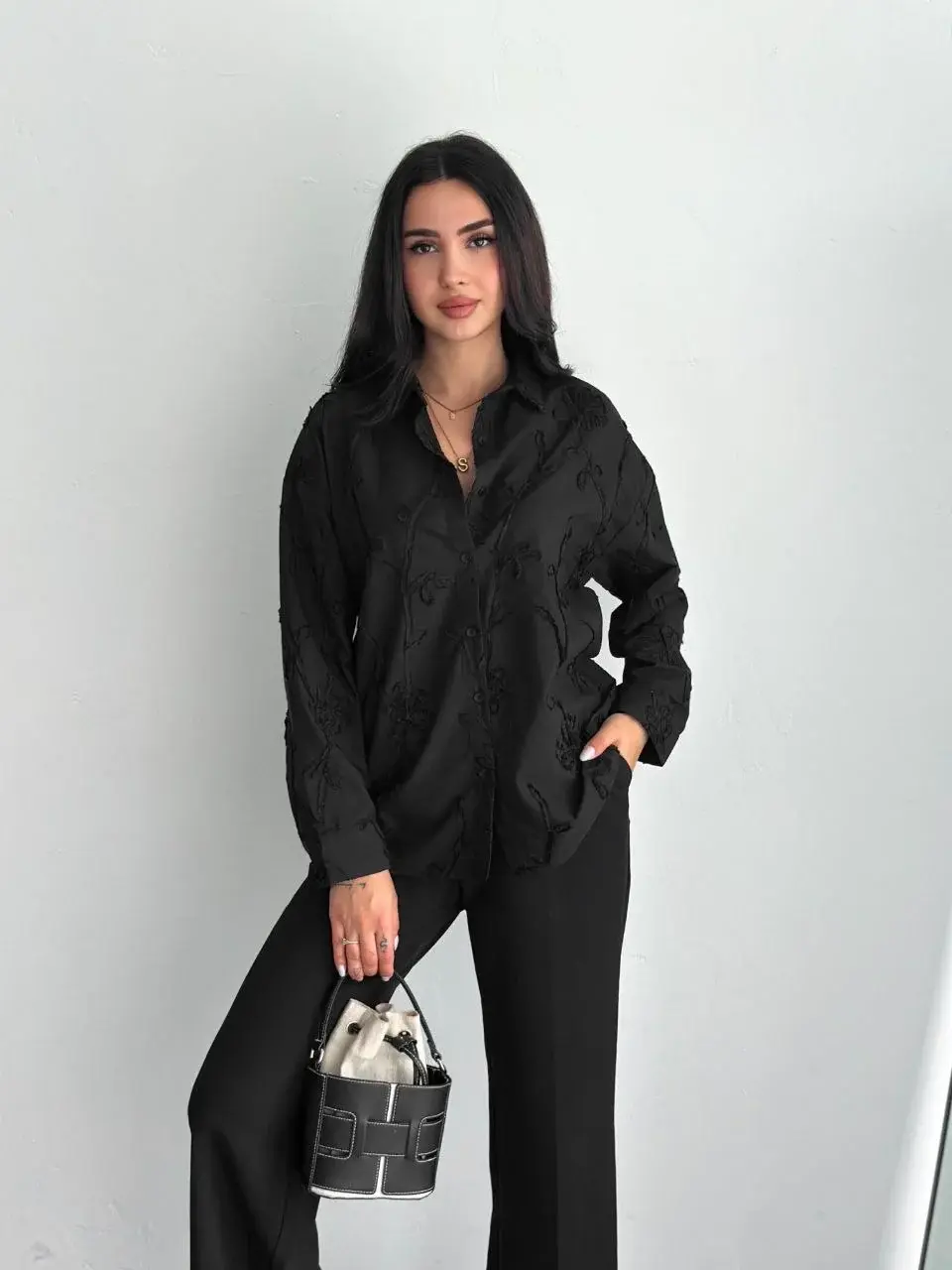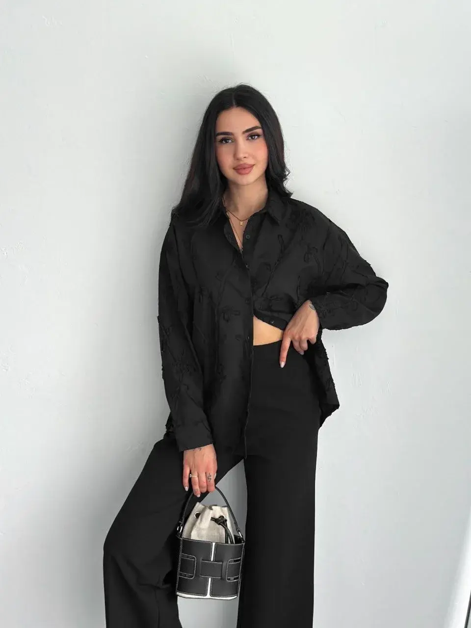Kadın Nakışlı Uzun Kollu Gömlek - Siyah