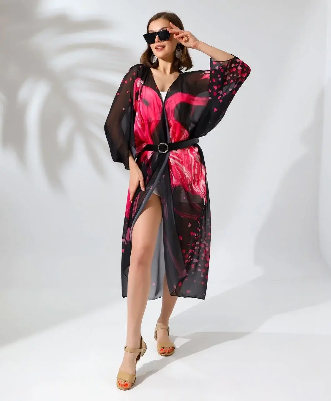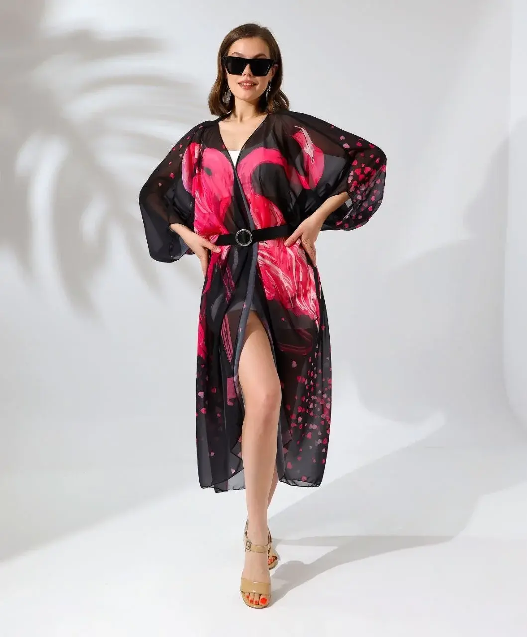 Kadın Rahat Kesim Şifon Kimono - Siyah