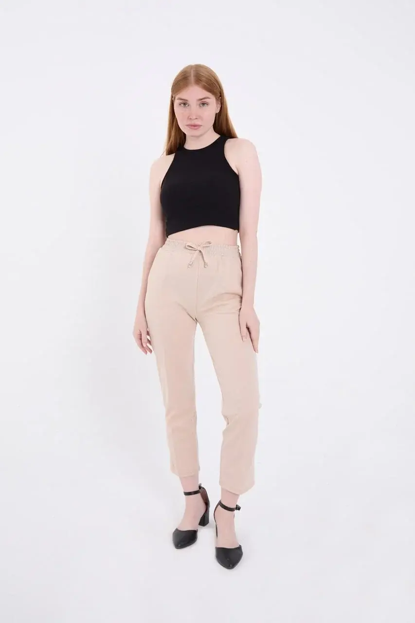 Kadın Tam Kalıp Basic Eşofman Pantolon - Bej