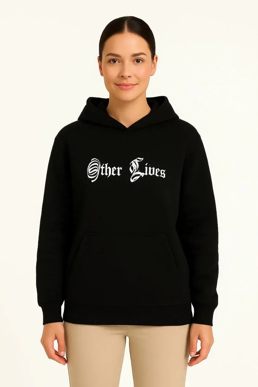 Kadın Üç İplik Kapşonlu ön ve Arka Baskılı SweatShirt hoodie- Siyah