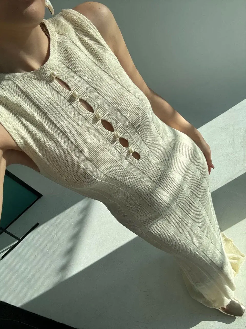 Kalın Fitilli Uzun Triko Elbise - Kırık Beyaz