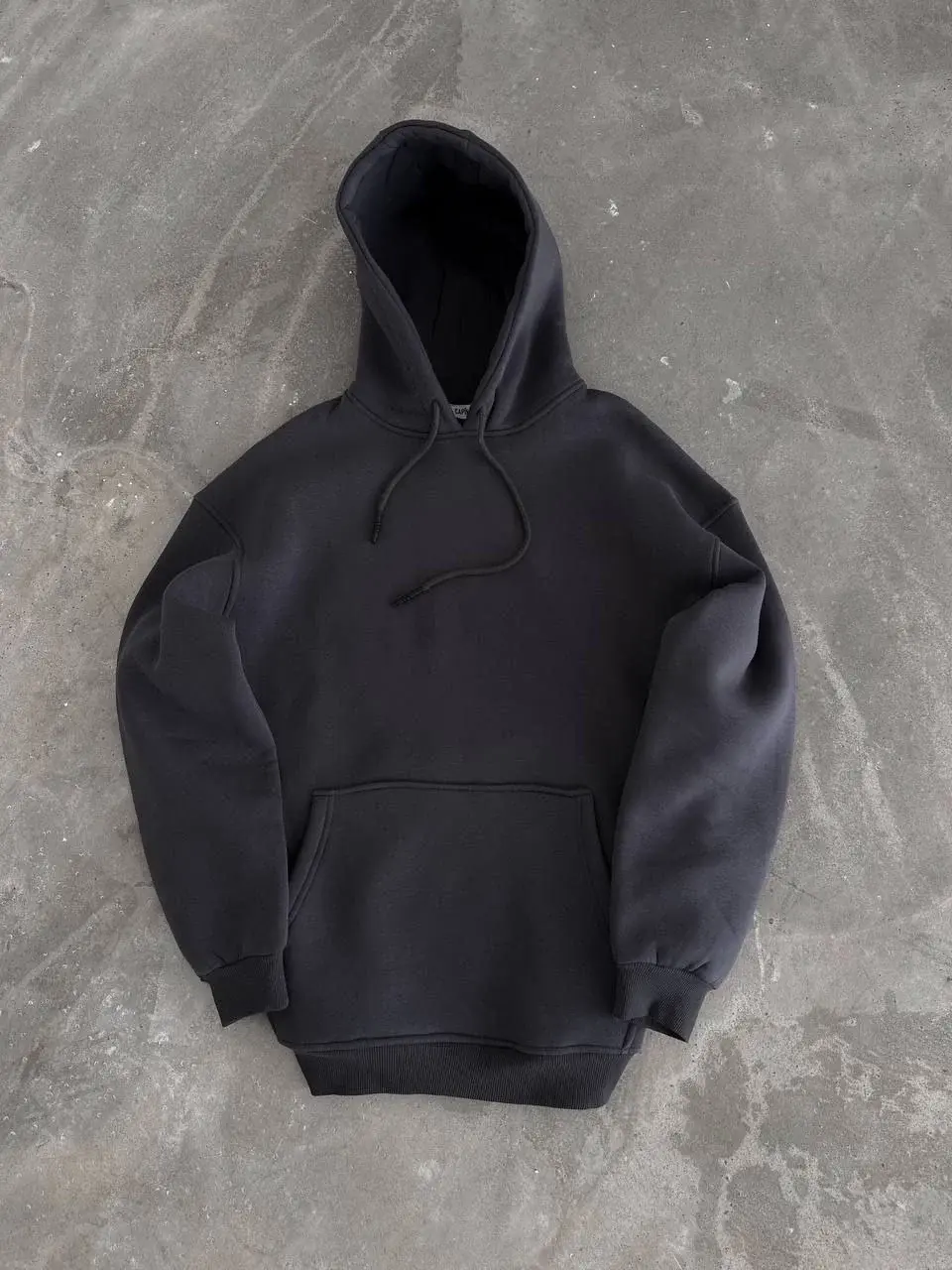 Kapüşonlu Üç İplik Penye Basic SweatShirt - Füme