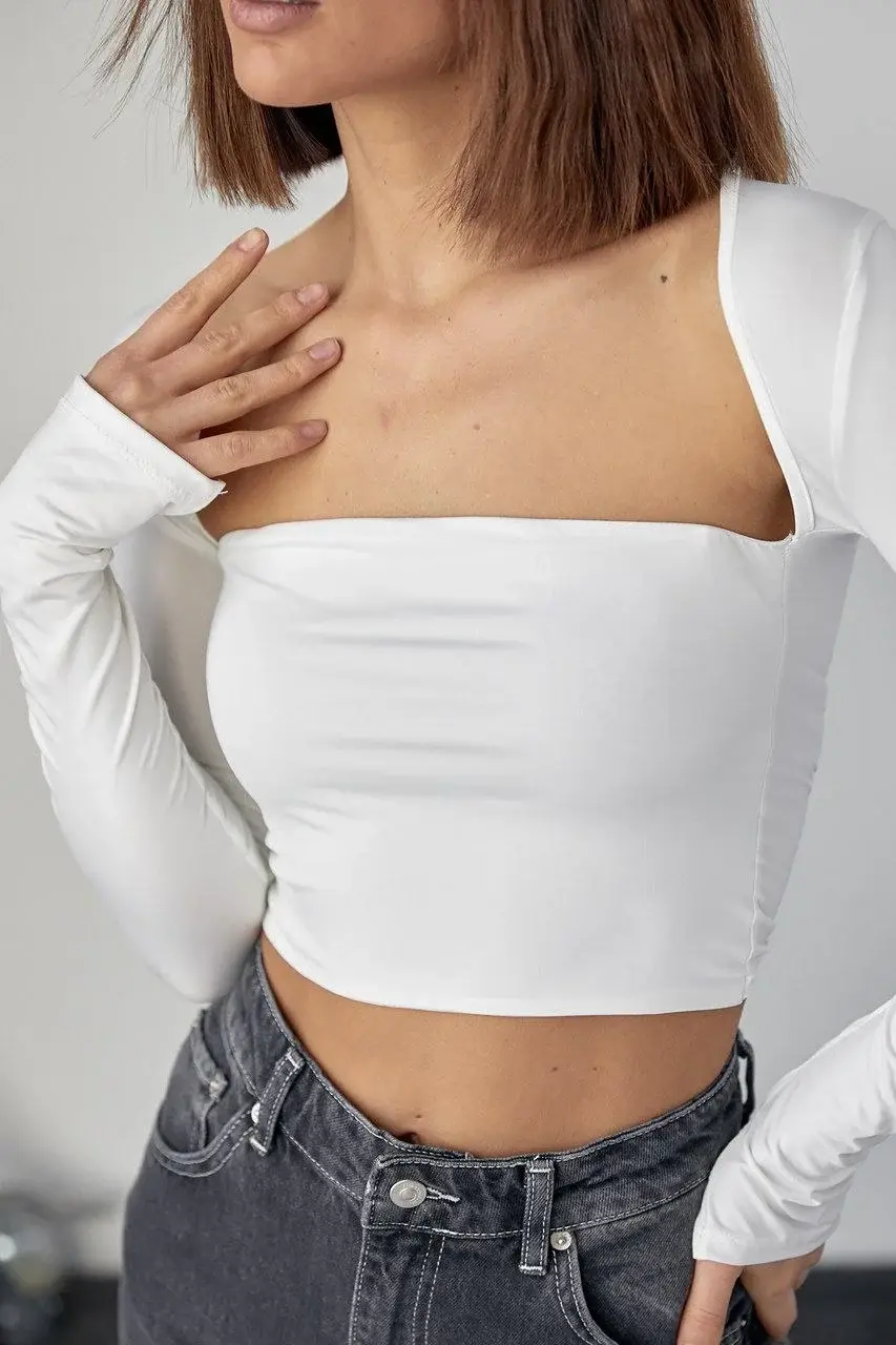 Kara Yaka Uzun Kollu Crop - Beyaz