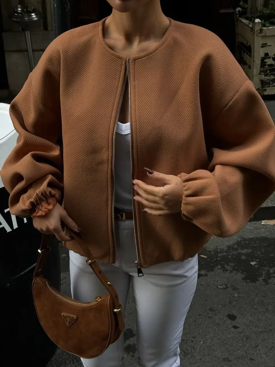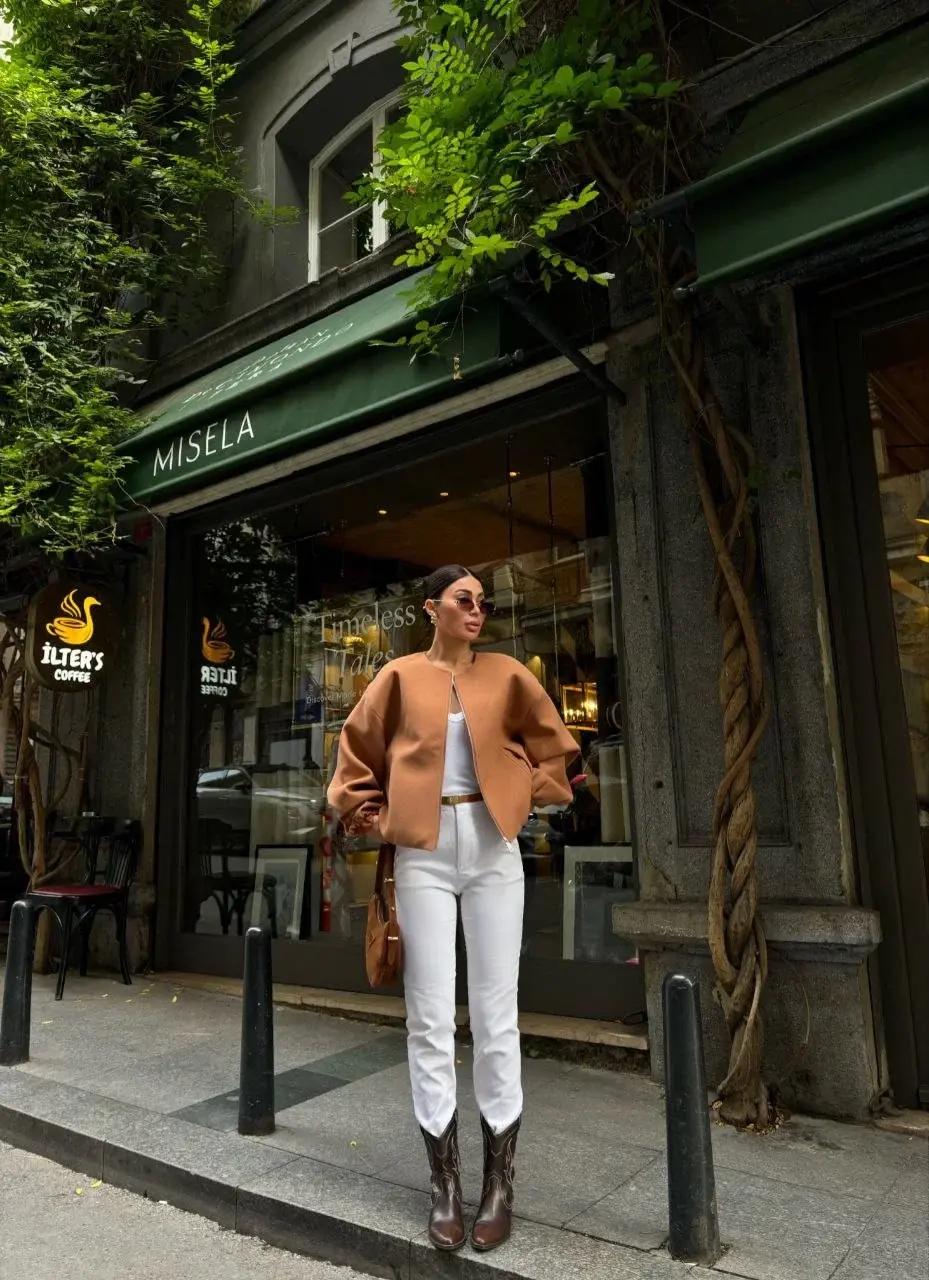 Kaşe Kaşmir Fermuarlı CEKET - Kahve