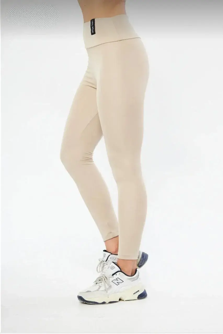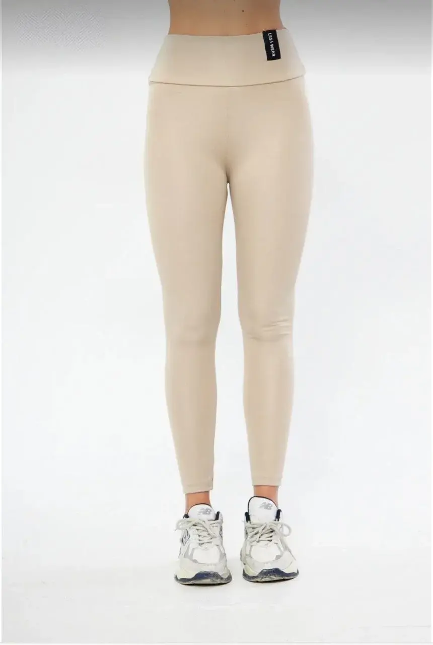Kışlık Yüksek Bel Toparlayicı ve Sıkılaştırıcı Likralı Şardonlu Tayt - Bej