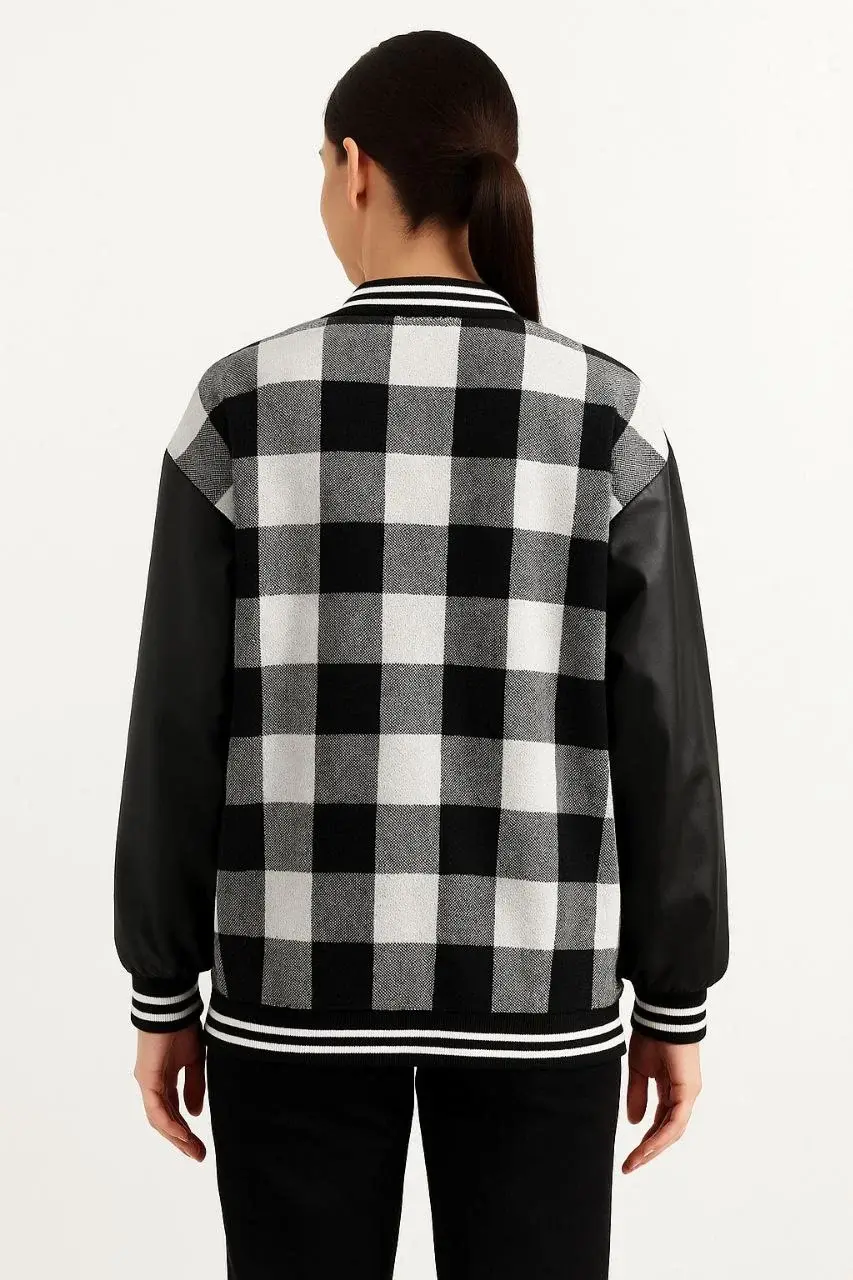 Kolları Suni Deri içi Astarlı Oduncu Kolej içi Ceket - Gri