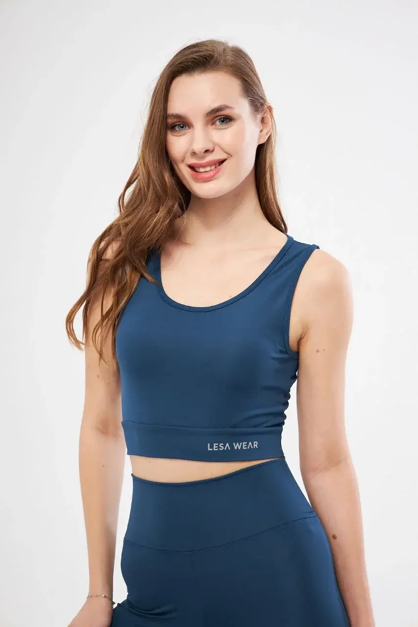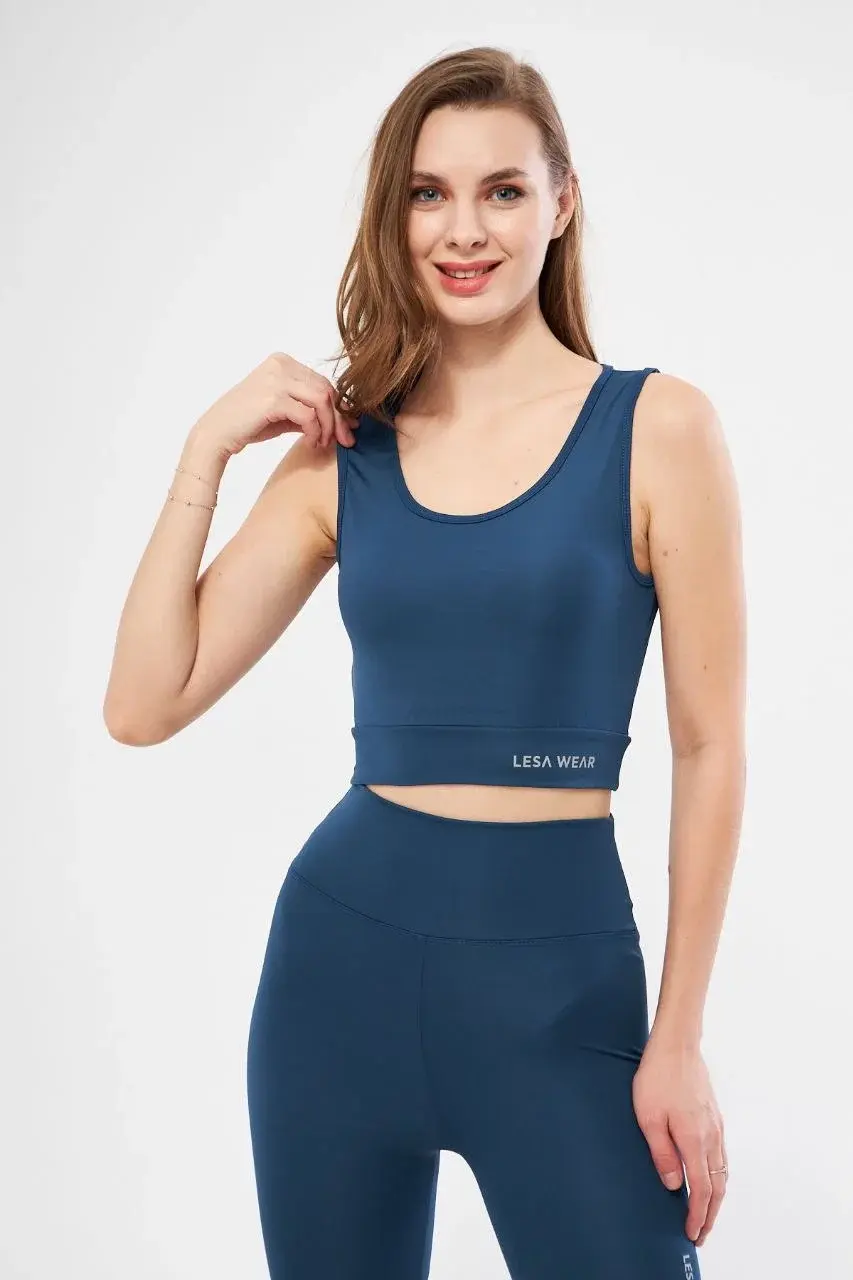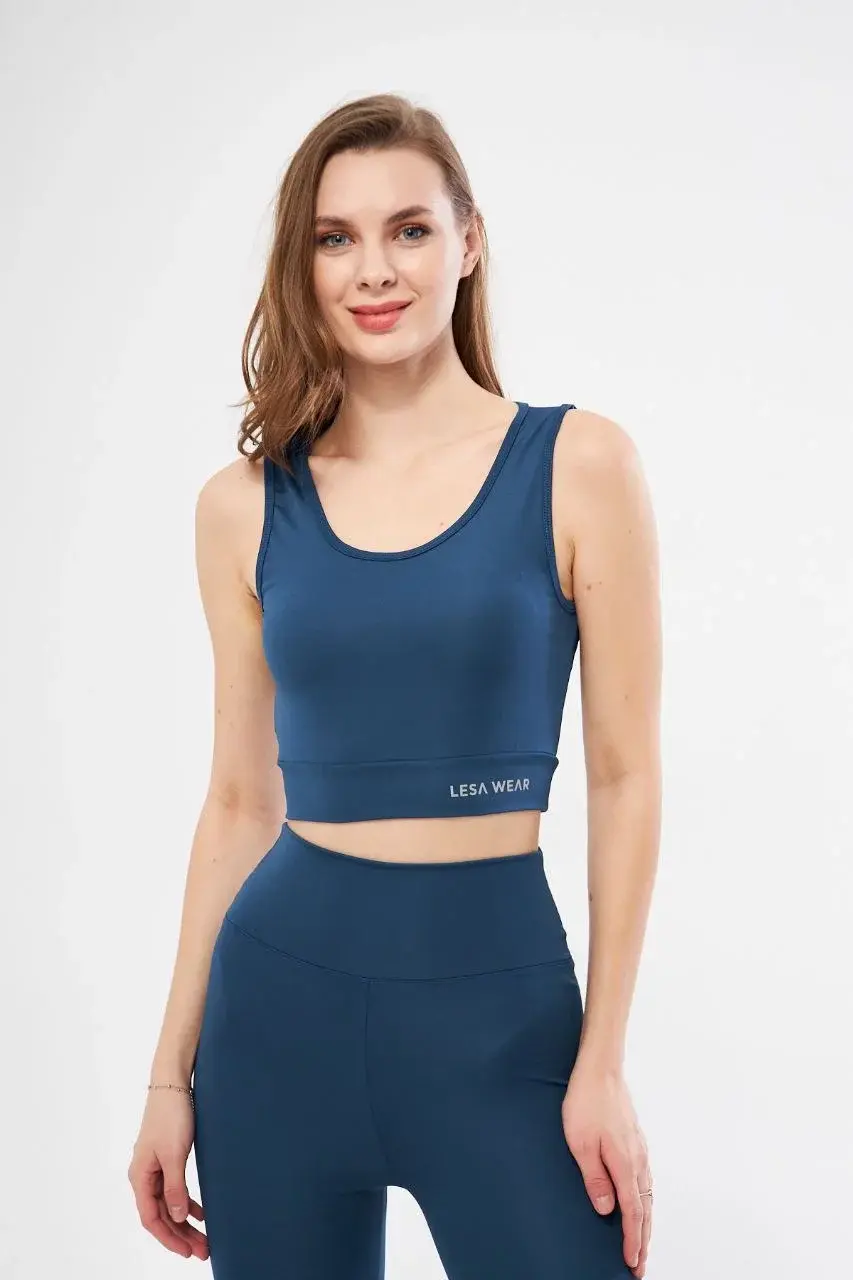 Kolsuz Sporcu Baskılı Crop - Turkuaz