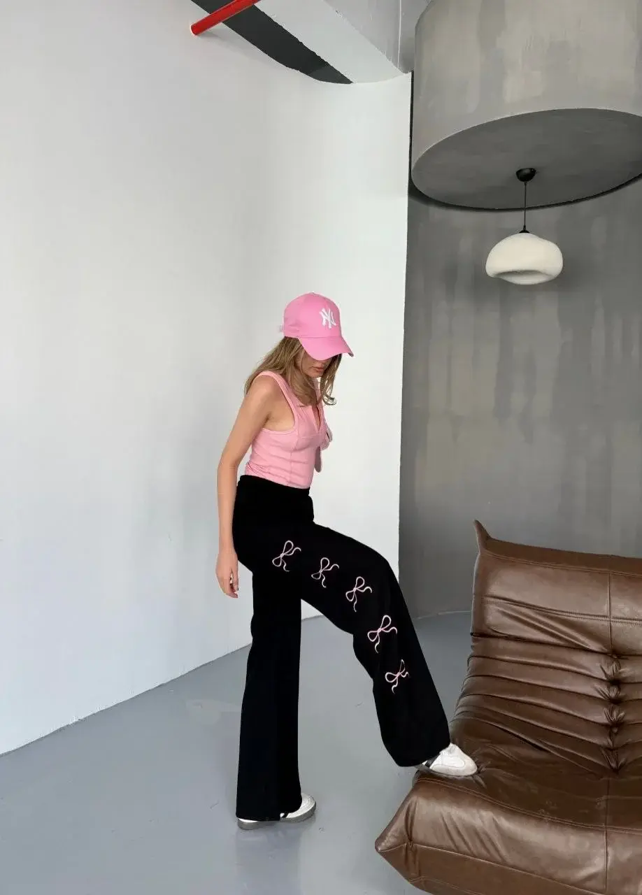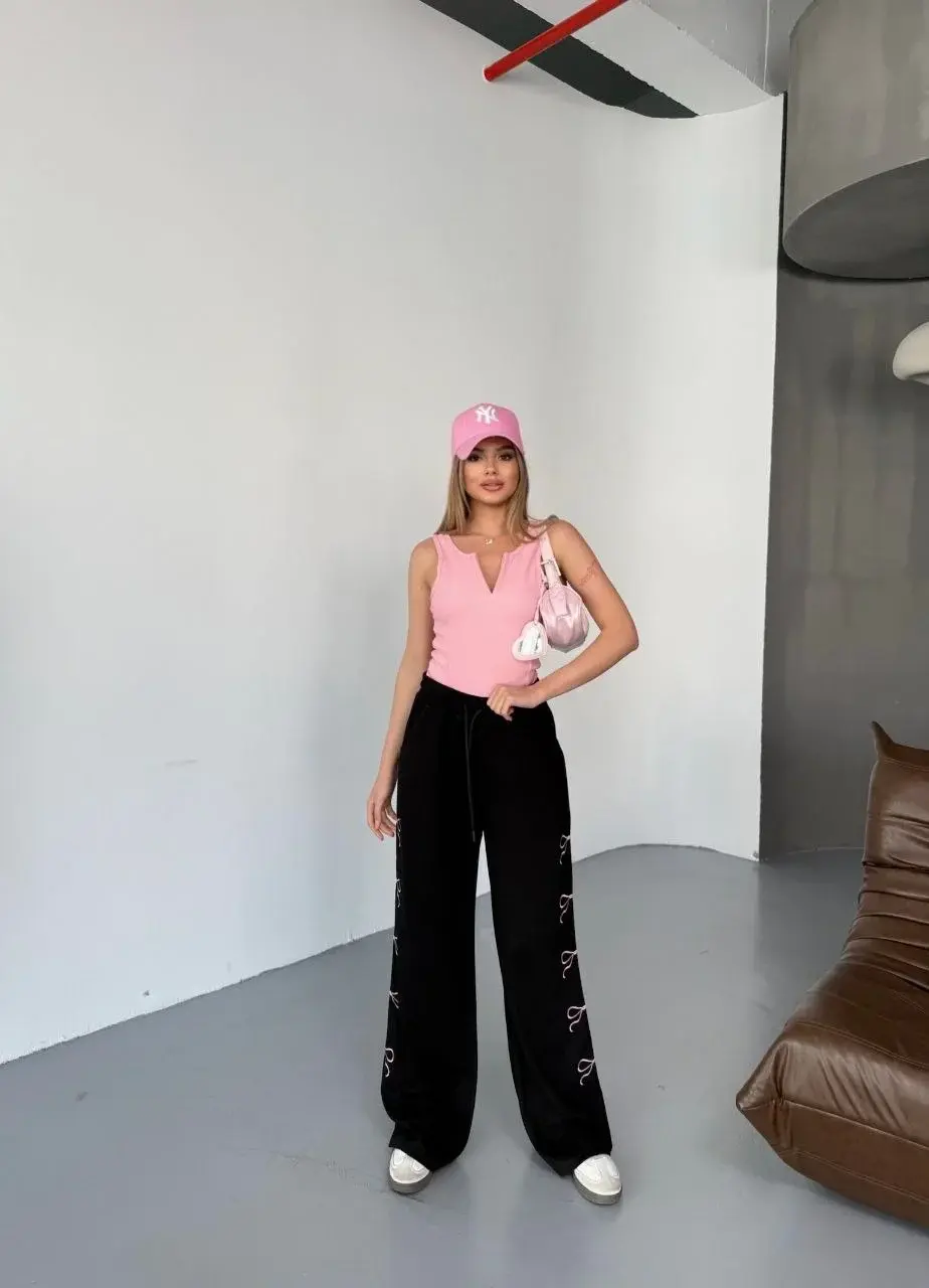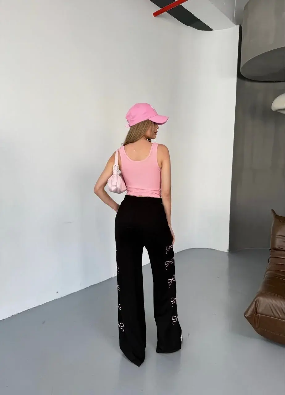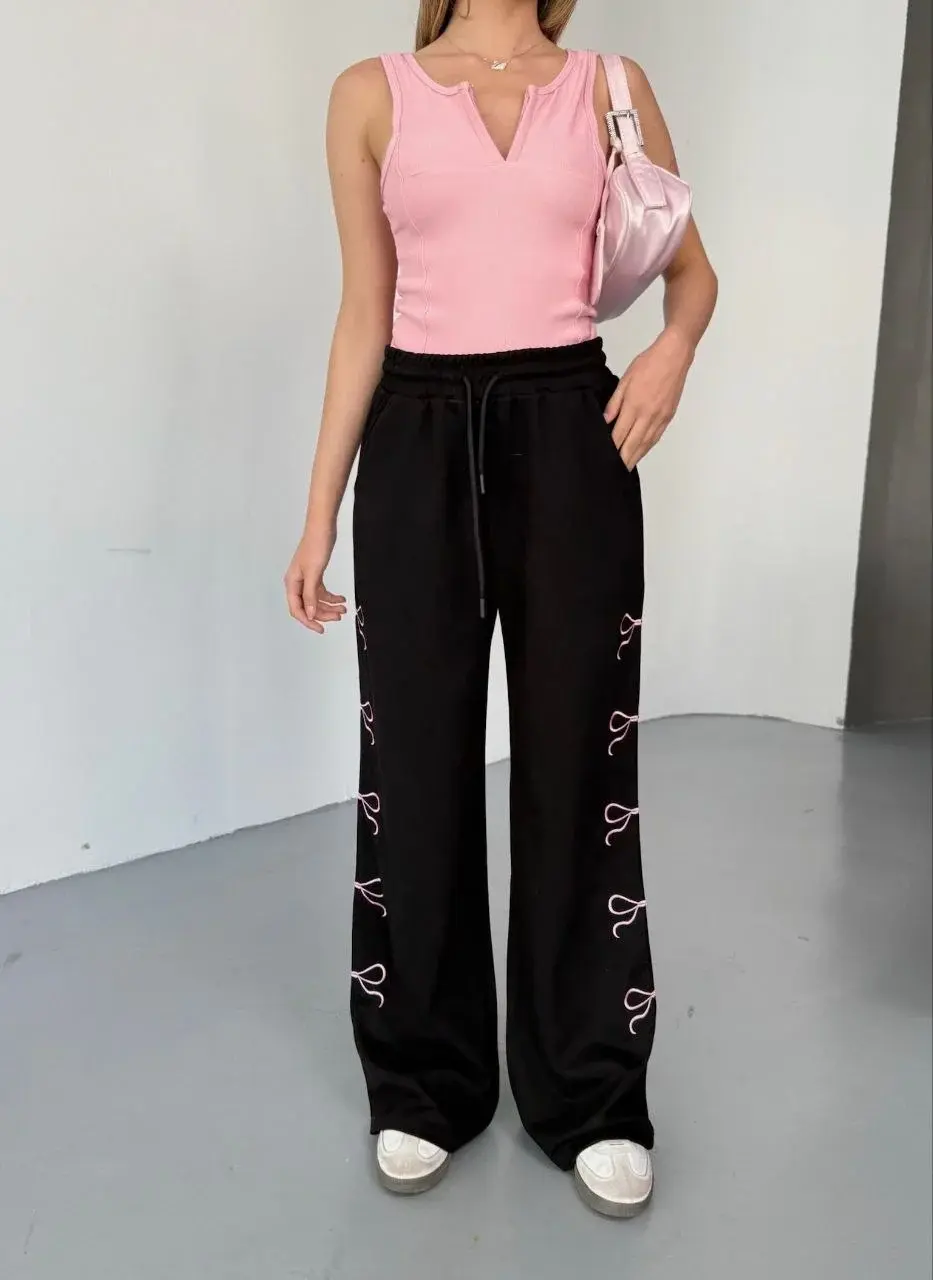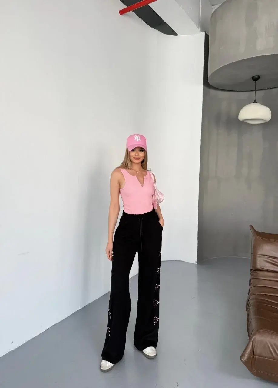 Osy Modal Yumuşak Dokulu Kumaş Nakış işlemeli Rahat Bol Paça Eşofman Pantalon - Siyah