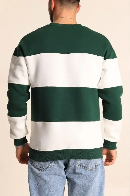 Parçalı Bisiklet Yaka Baskılı SweatShirt - Yeşil