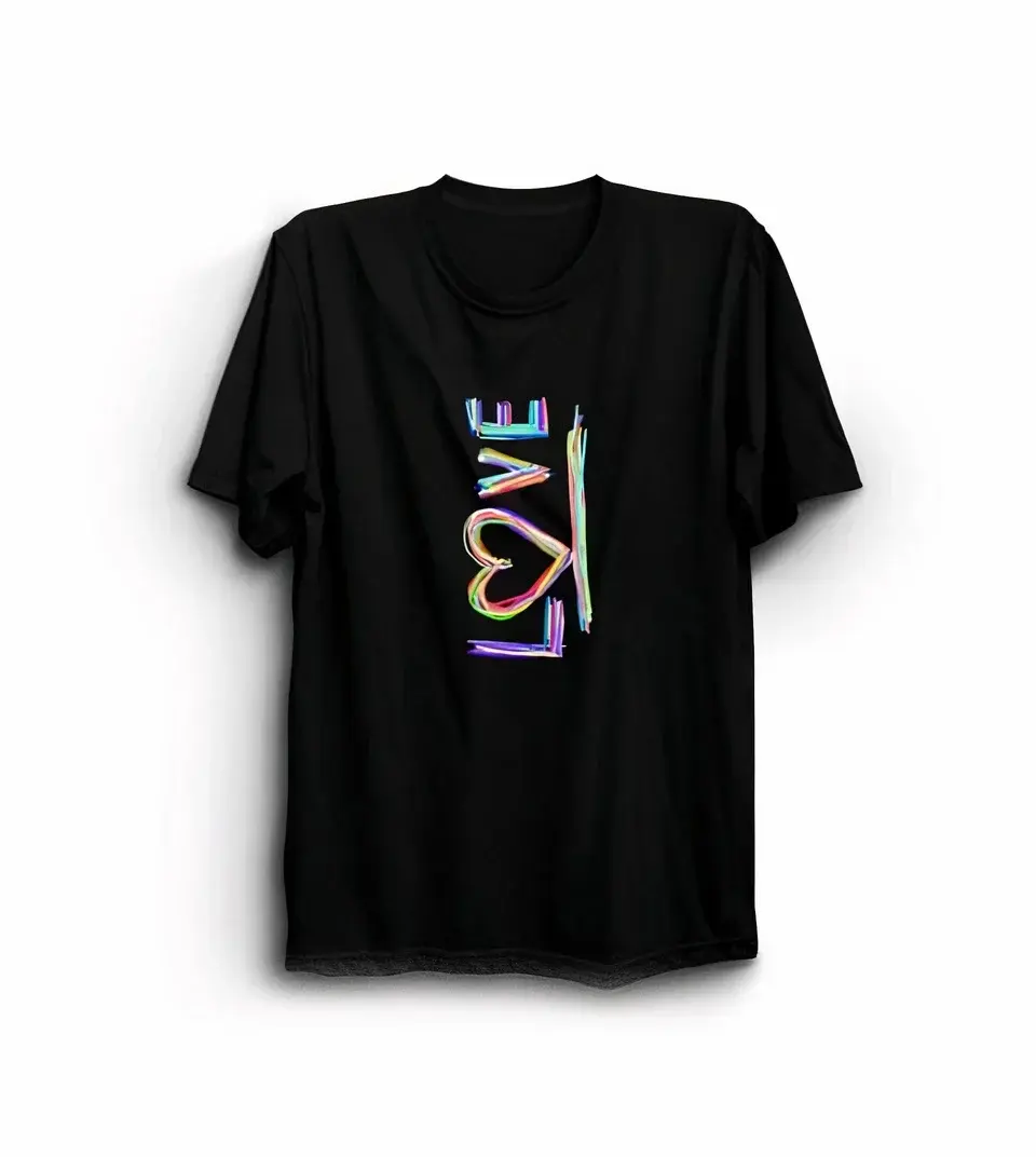 Sevgililer Günü İçin Özel Tasarım Love Baskılı T-shirt - Siyah