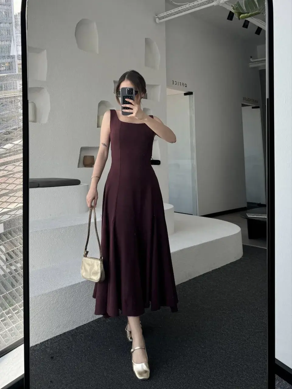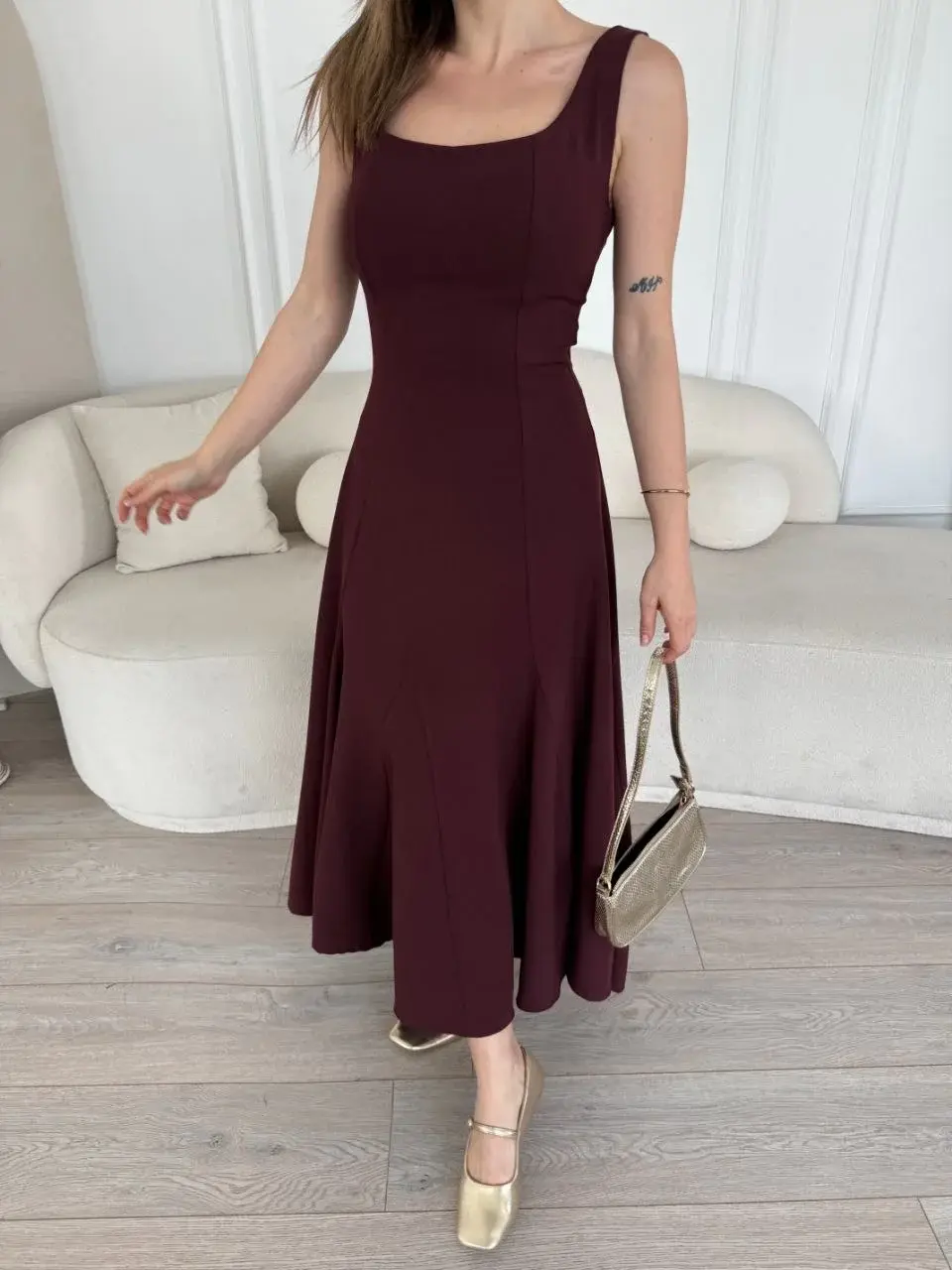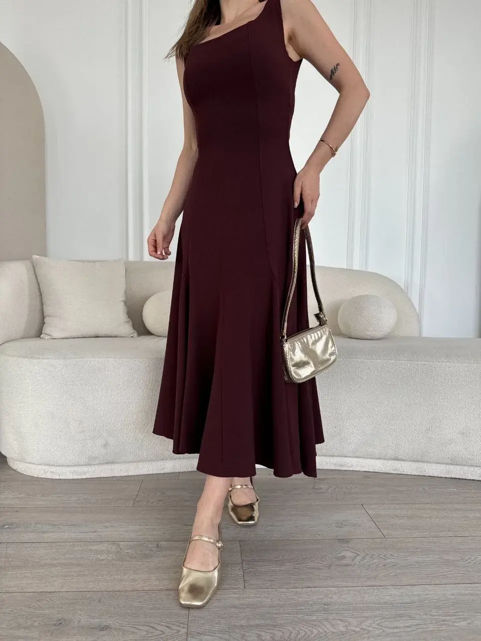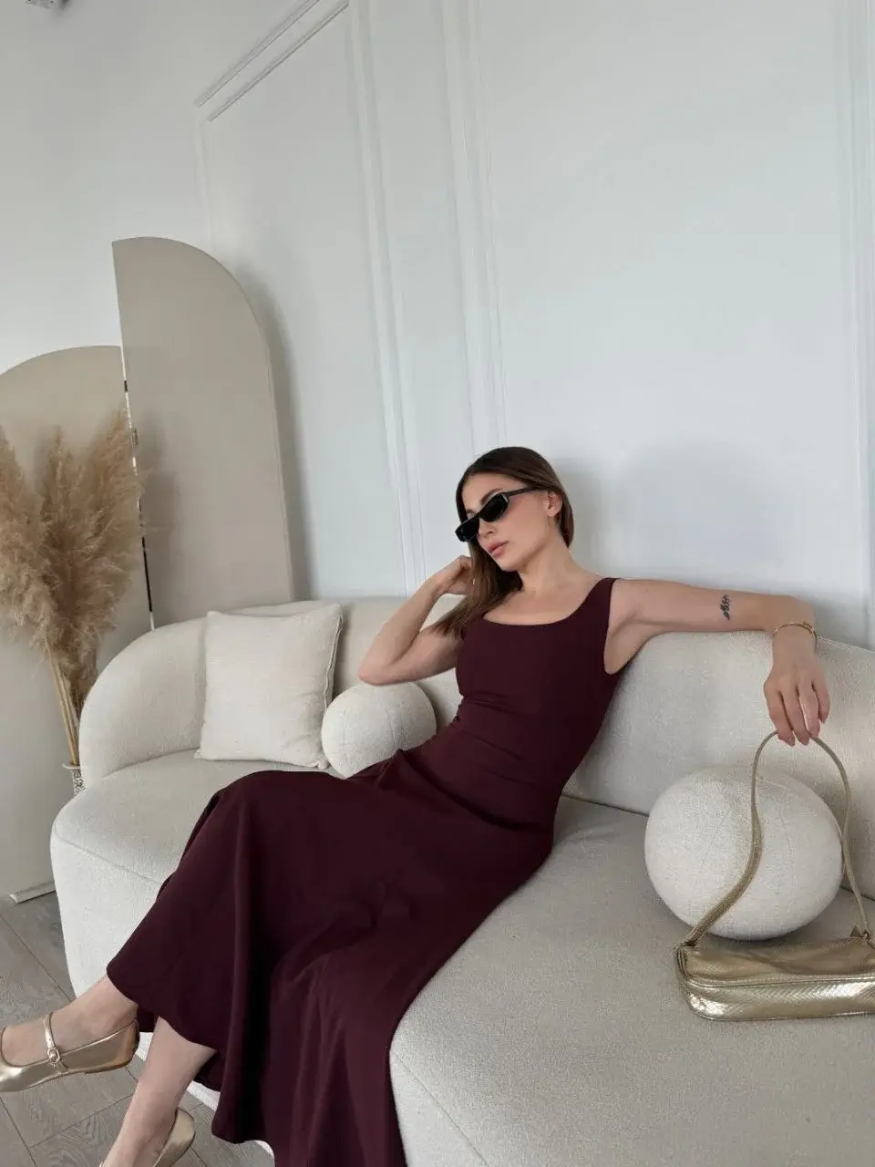 Sırt Dekolteli Kolsuz Uzun Elbise - Mürdüm