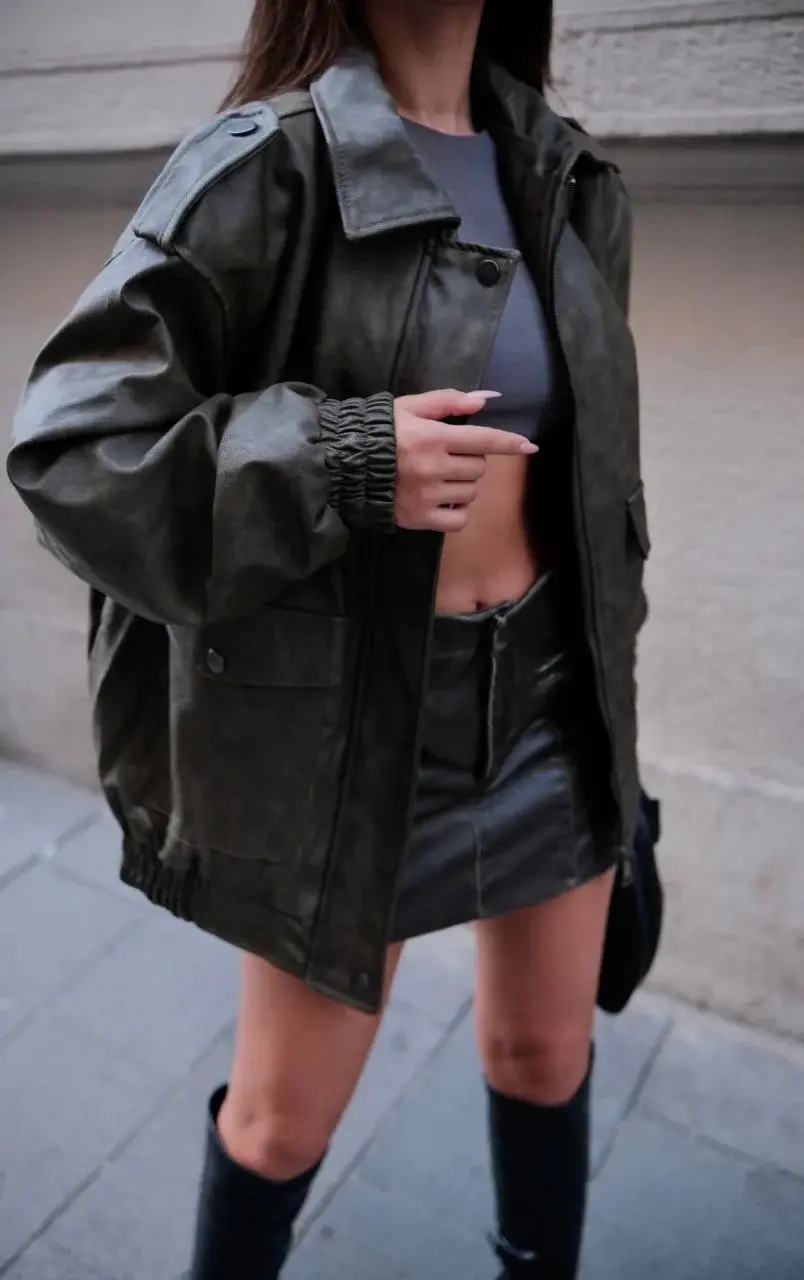 Suni Deri Pilot Ceket