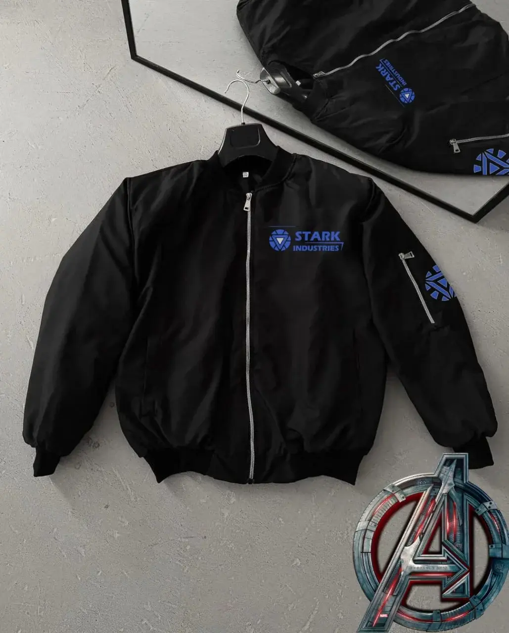 Tam Kalıp Uzun Kol Baskılı Bomber Ceket - Siyah