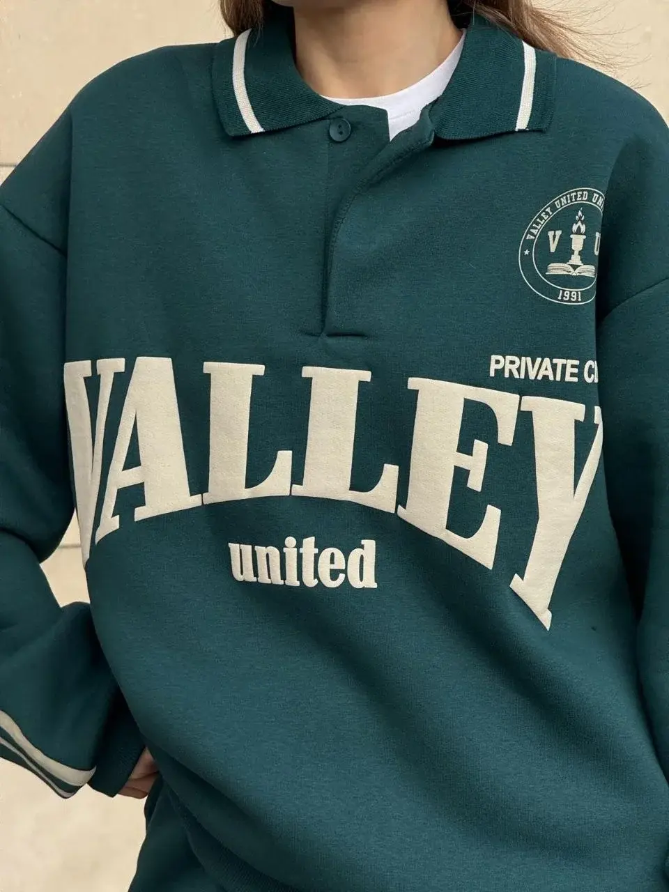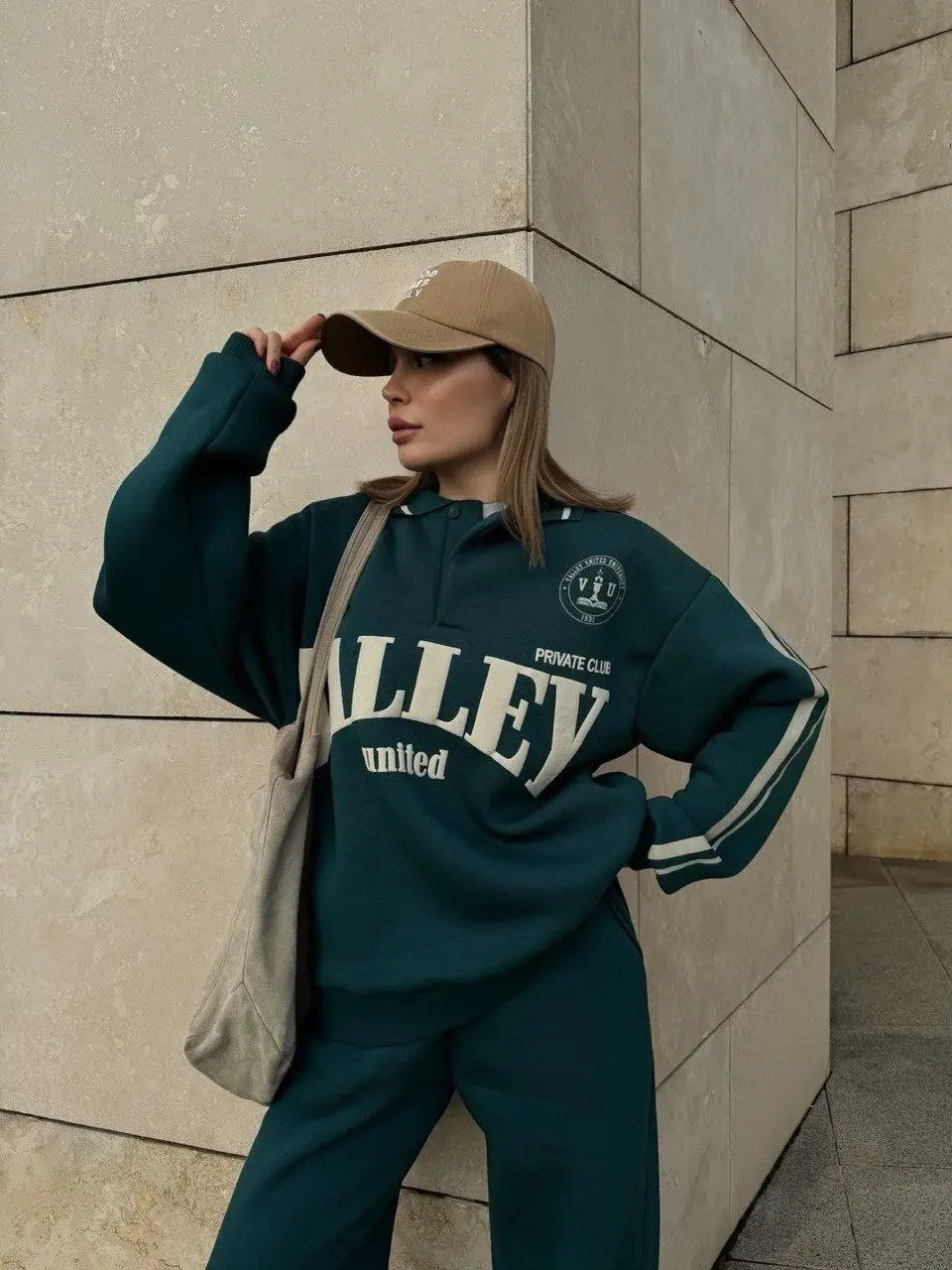 Üç İplik Yakalı Sweat Baggy Pantalonlu Takım - Yeşil