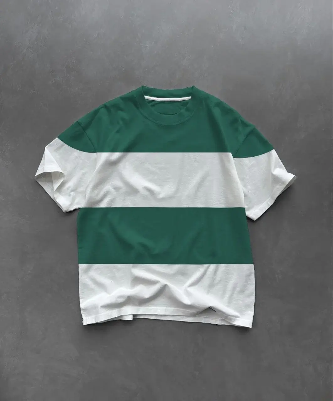 Unisex Bisiklet Yaka Parçalı T-Shirt - Yeşil