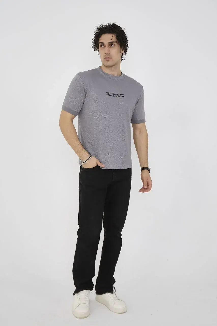 Unisex Bisiklet Yaka Slim fit T-Shirt- Gri
