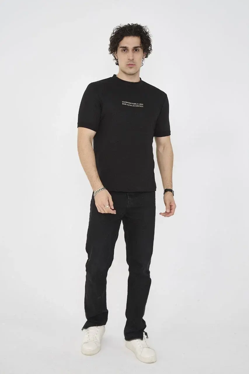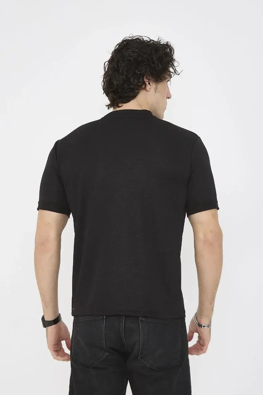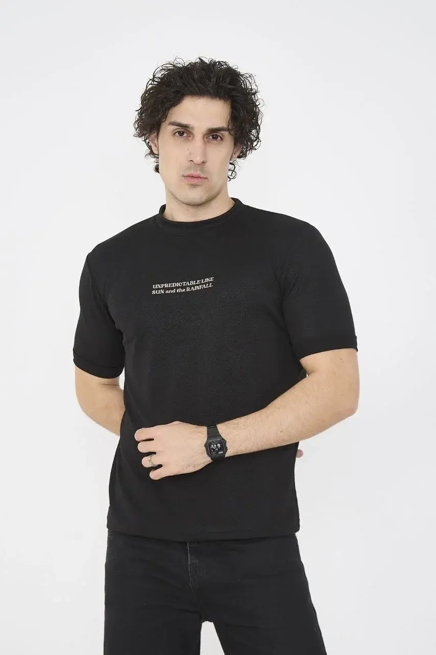 Unisex Bisiklet Yaka Slim fit T-Shirt- Siyah