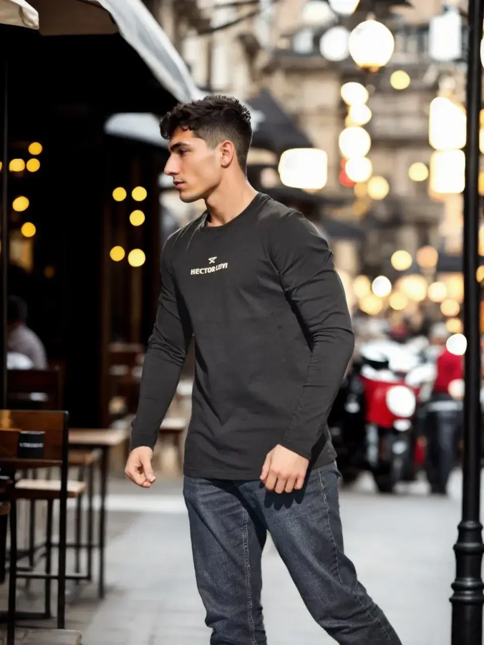 Unisex Bisiklet Yaka Uzun Kollu T-Shirt - Siyah