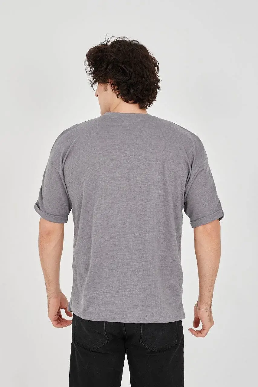 Unisex Jakar Kumaş Rahat Kol T-Shirt - Gri