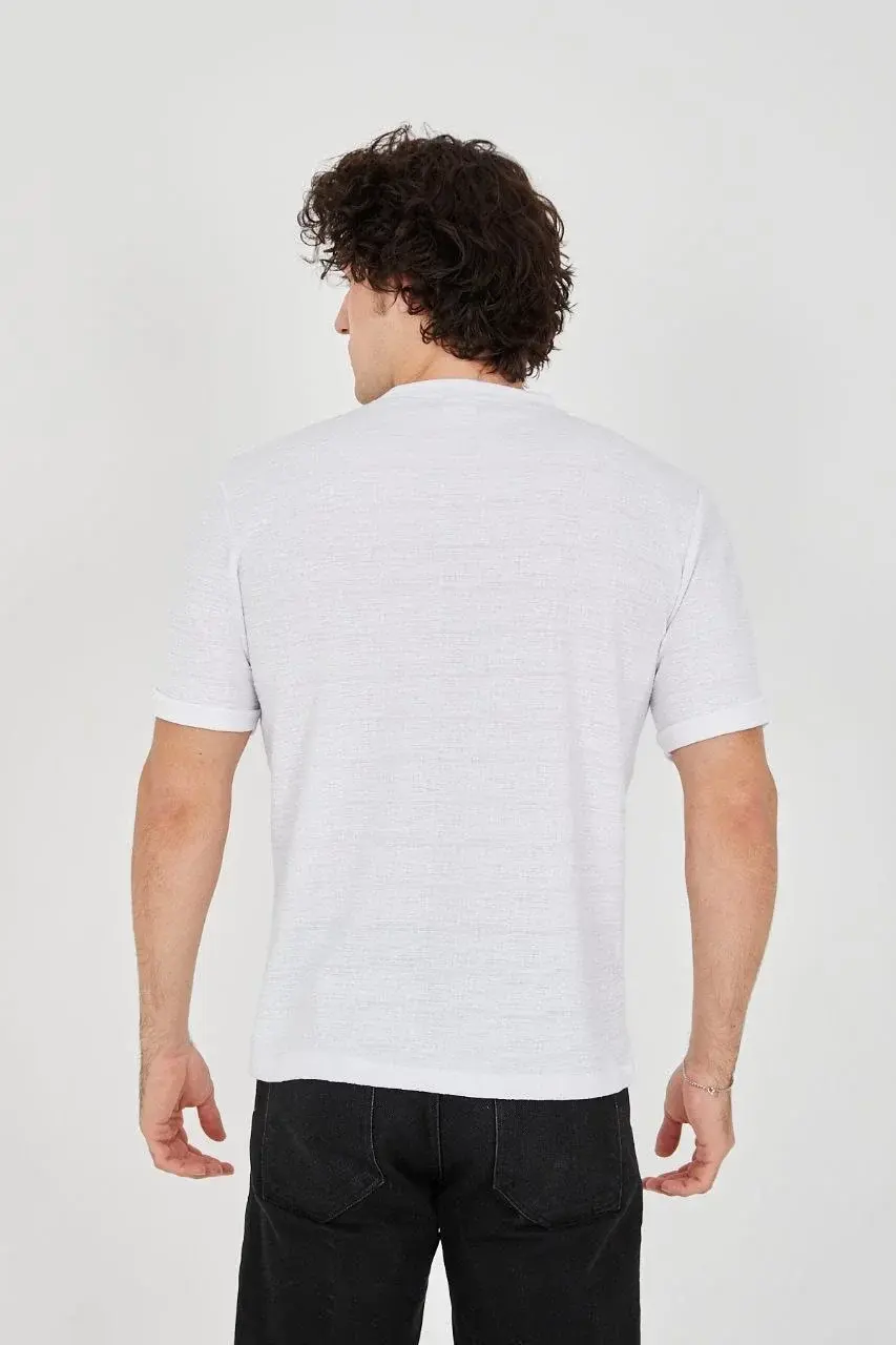 Unisex Jakar Kumaş Slim Fit T-Shirt - Beyaz
