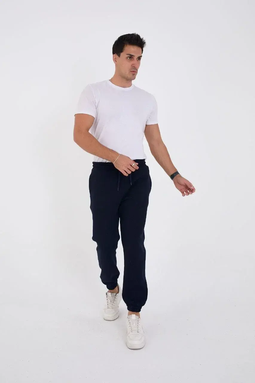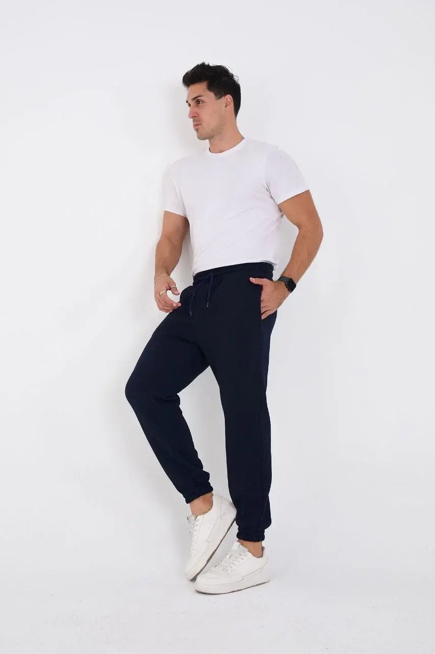 Unisex Kışlık Üç İplik Lastikli Eşofman Pantolon - Lacivert
