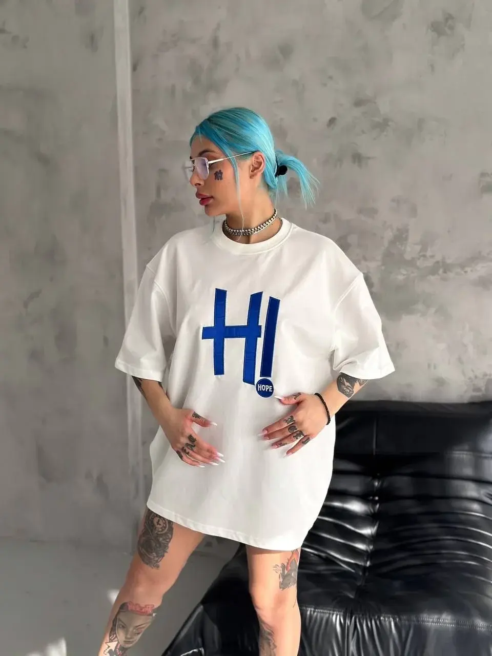 Unisex Nakış İşlemeli T-Shirt - Beyaz