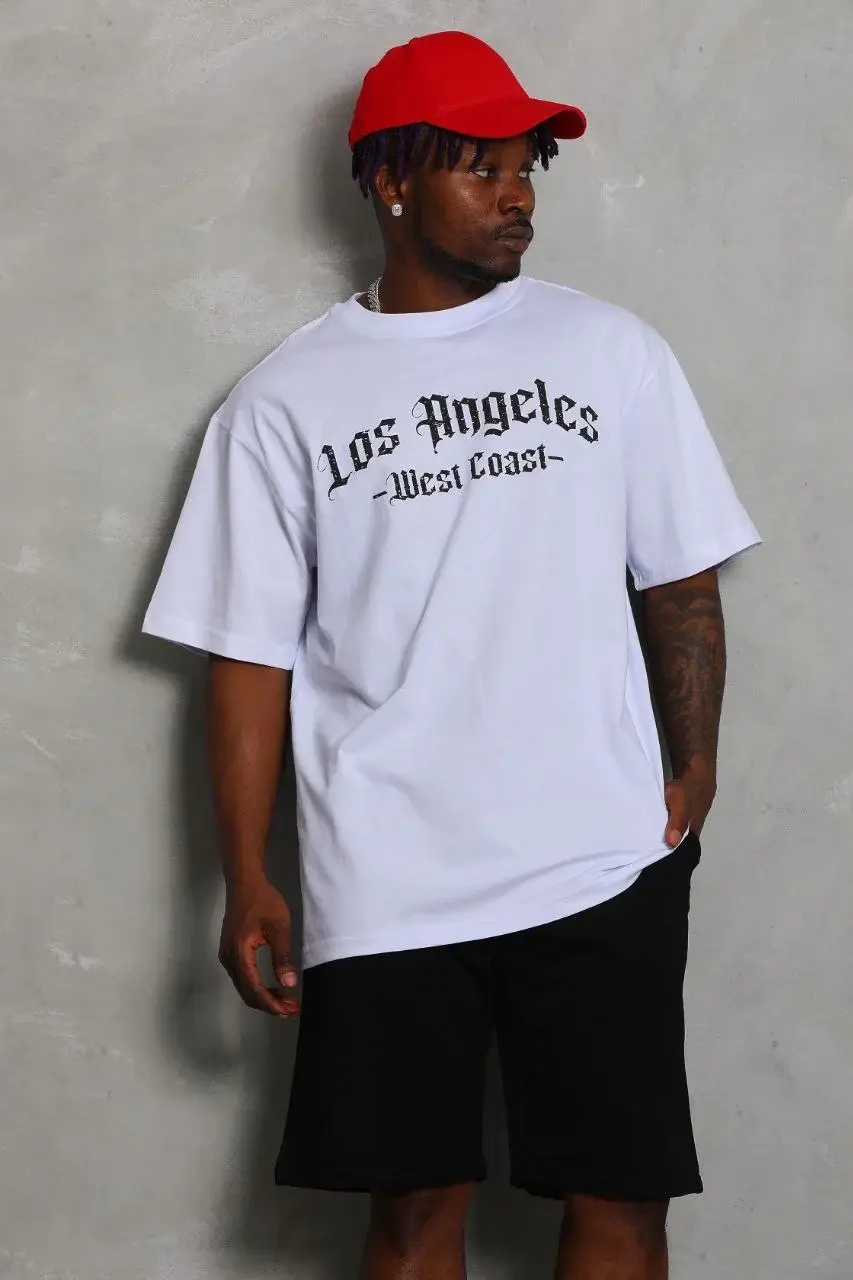 Unisex Oversize Baskılı Bisiklet Yaka T-Shirt - Beyaz