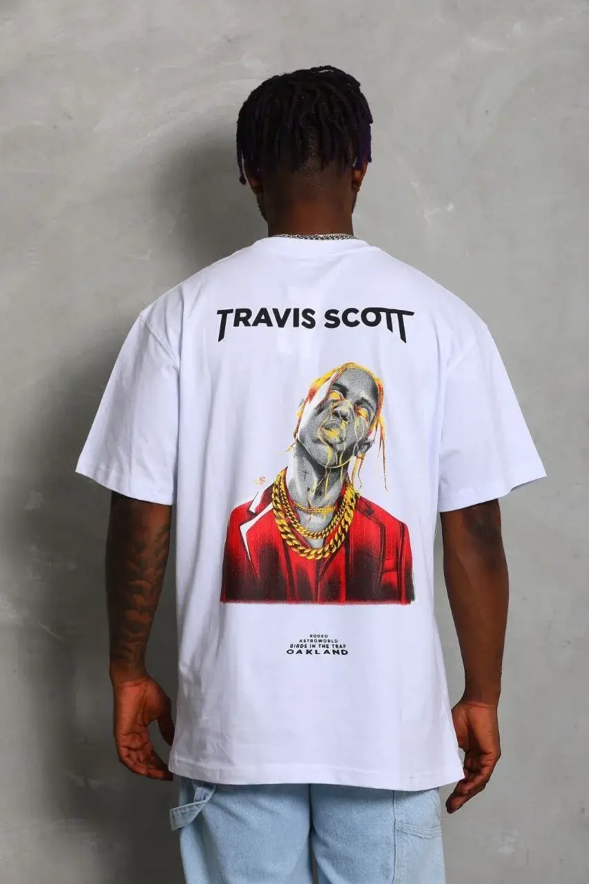 Unisex Oversize Baskılı Bisiklet Yaka T-Shirt - Beyaz