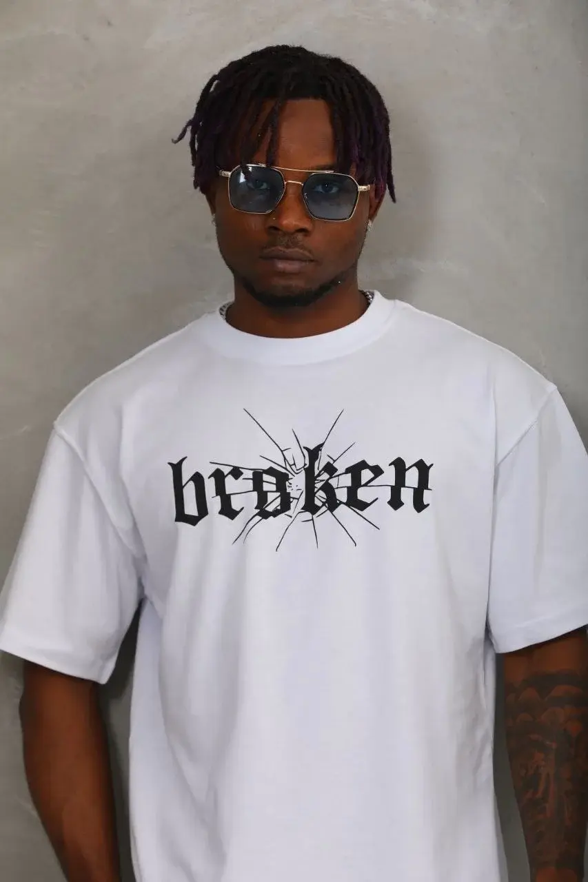 Unisex Oversize Baskılı Bisiklet Yaka T-Shirt - Beyaz