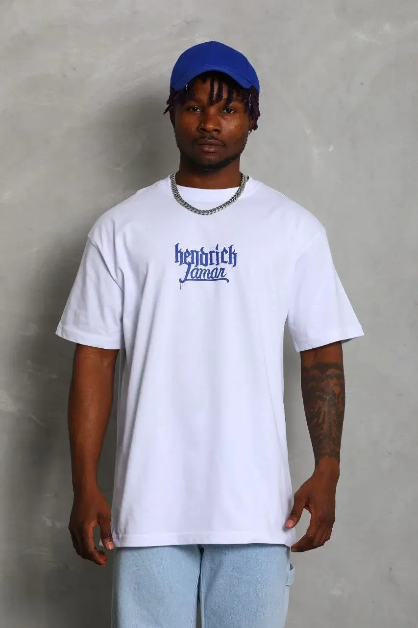 Unisex Oversize Baskılı Bisiklet Yaka T-Shirt - Beyaz