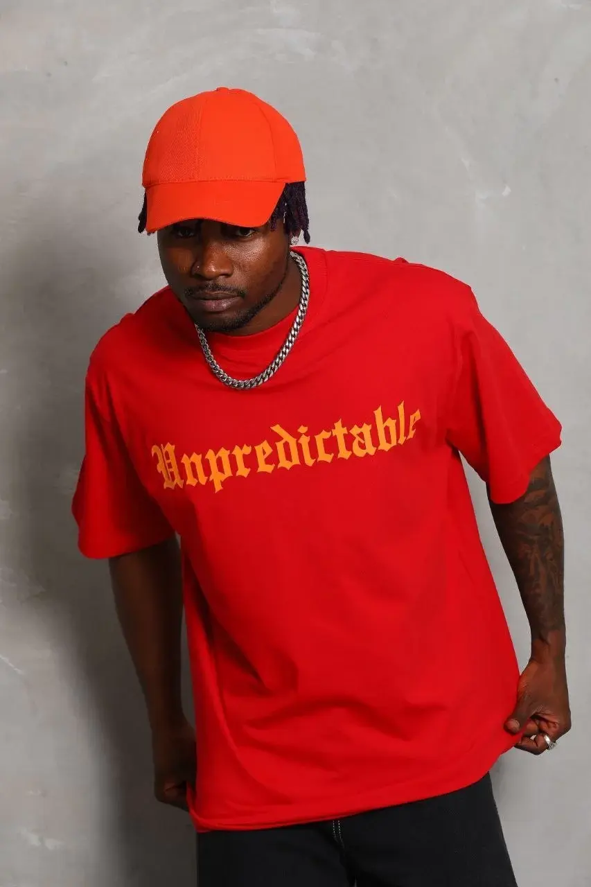 Unisex Oversize Baskılı Bisiklet Yaka T-Shirt - Kırmızı