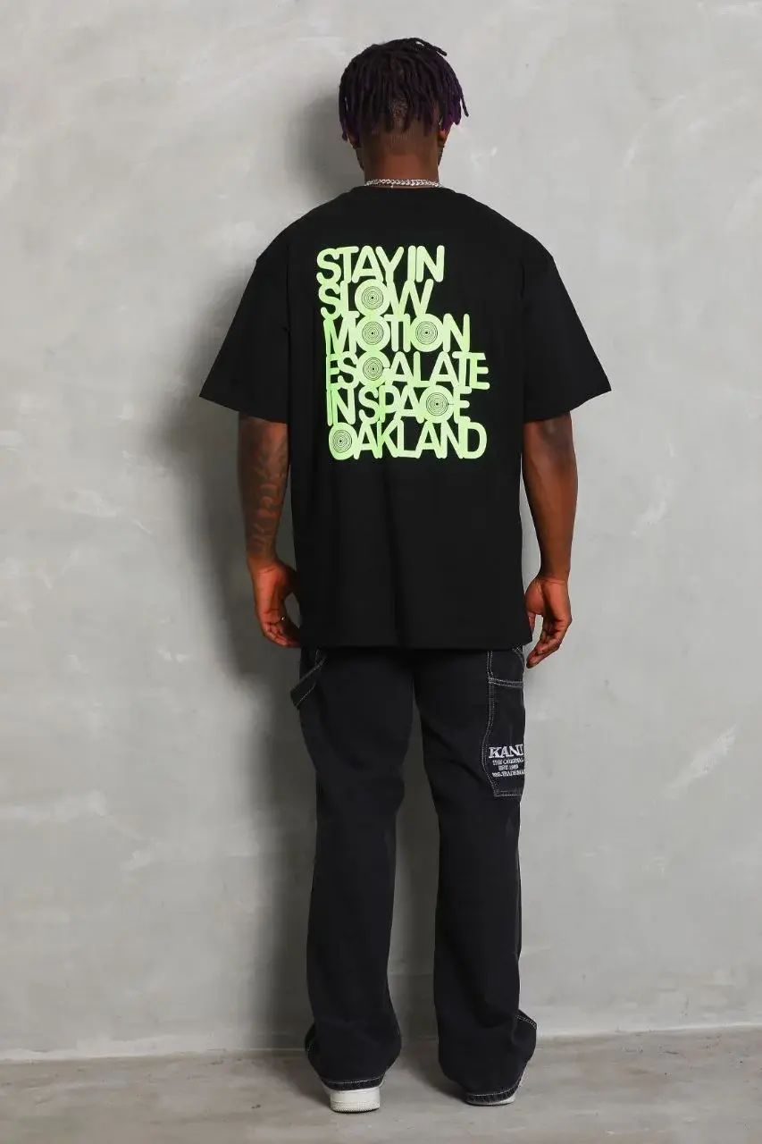 Unisex Oversize Baskılı Bisiklet Yaka T-Shirt - Siyah