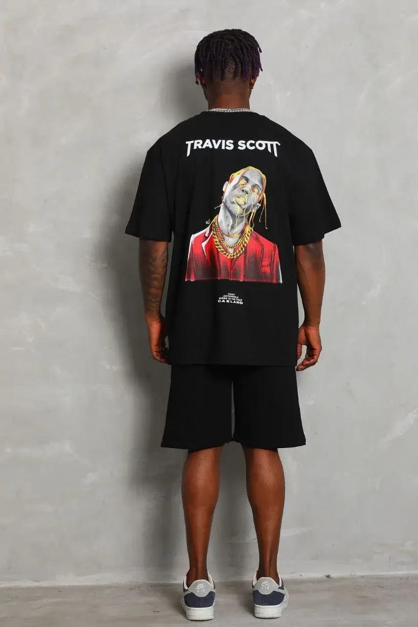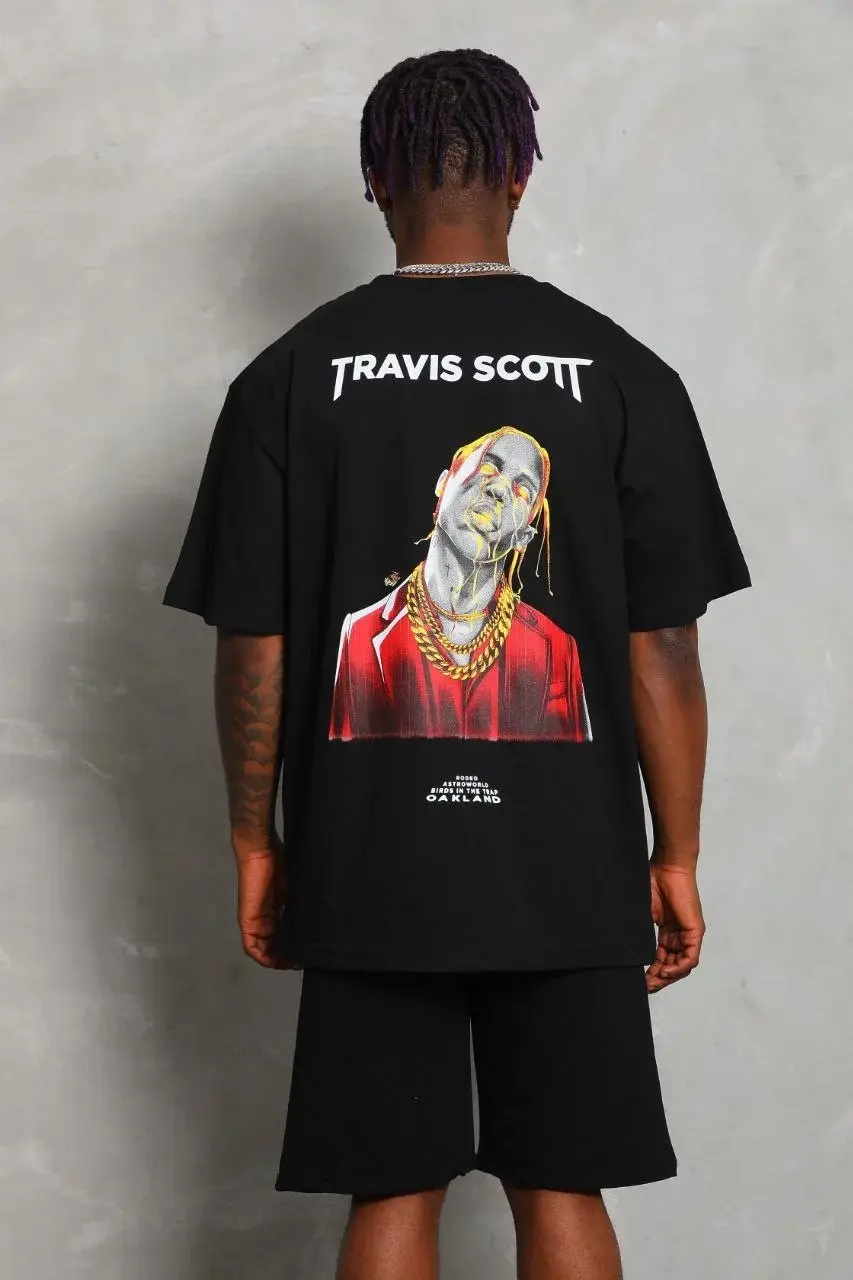 Unisex Oversize Baskılı Bisiklet Yaka T-Shirt - Siyah