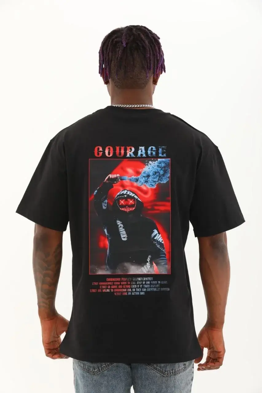 Unisex Oversize Baskılı Bisiklet Yaka T-Shirt - Siyah