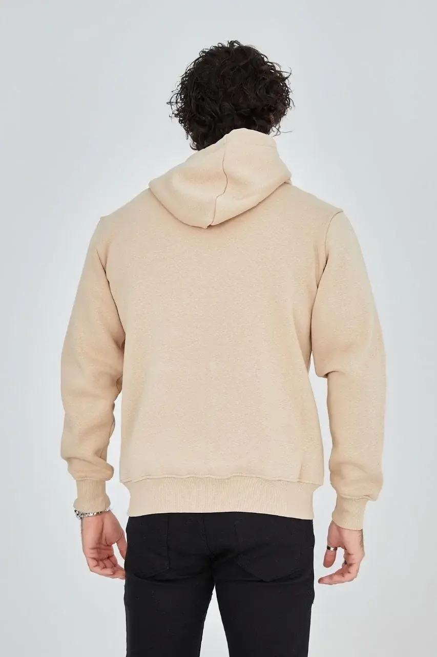 Unisex Tam Fermuarlı Kapşonlu SweatShirt - Bej