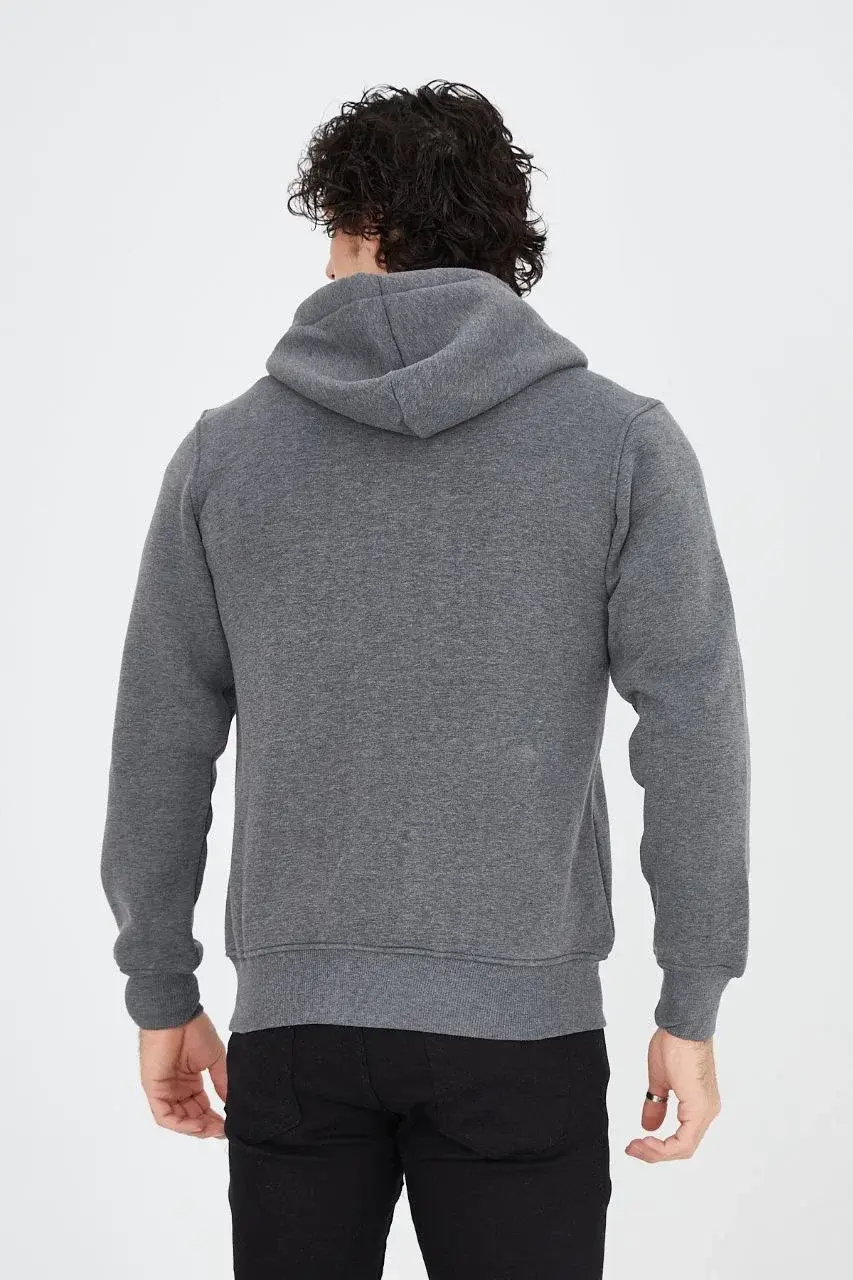 Unisex Tam Fermuarlı Kapşonlu SweatShirt - Füme