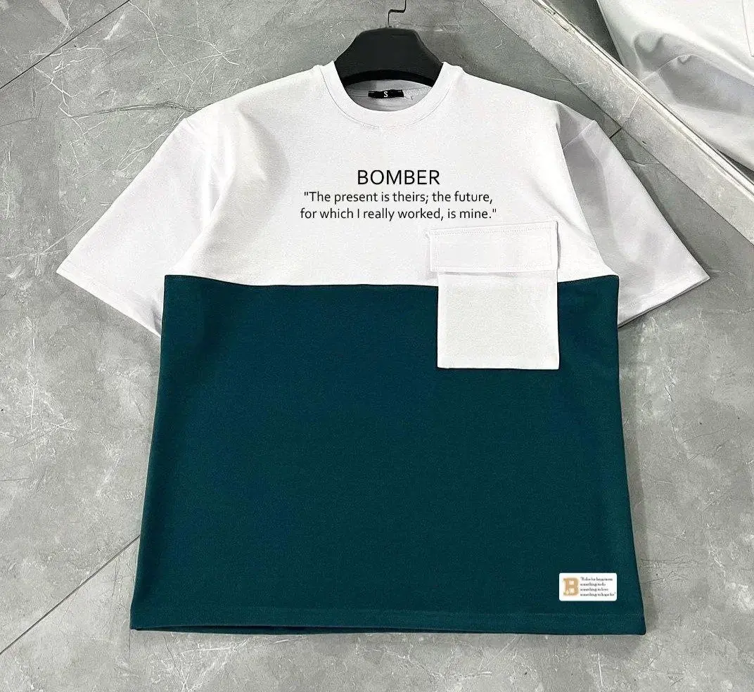 Unisex Torba Cep Detaylı Parçalı T-Shirt - Lacivert