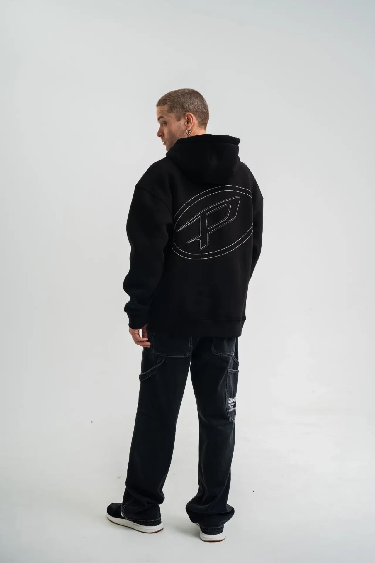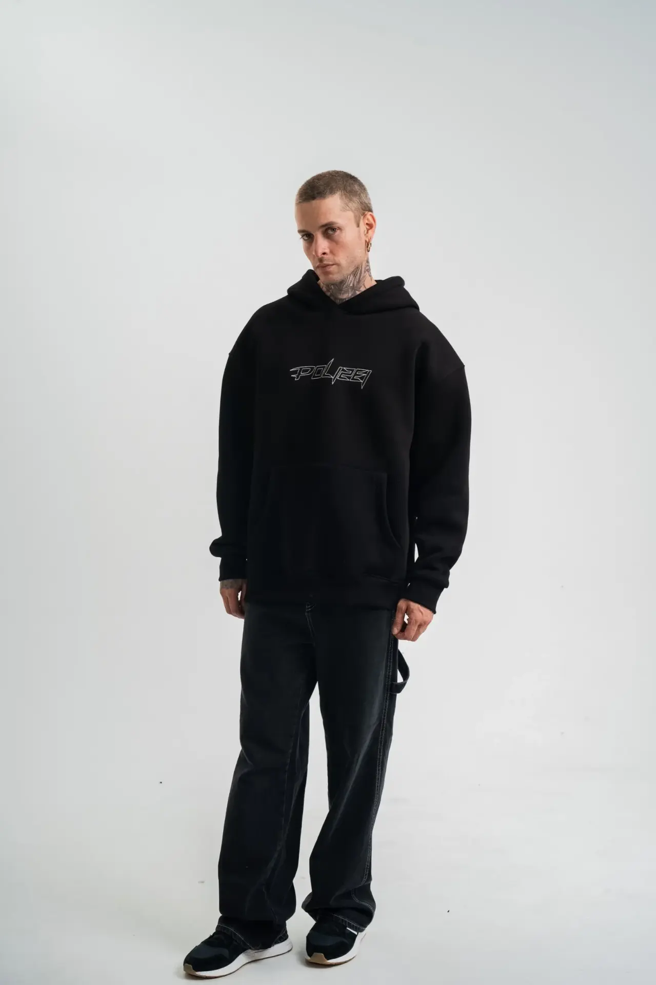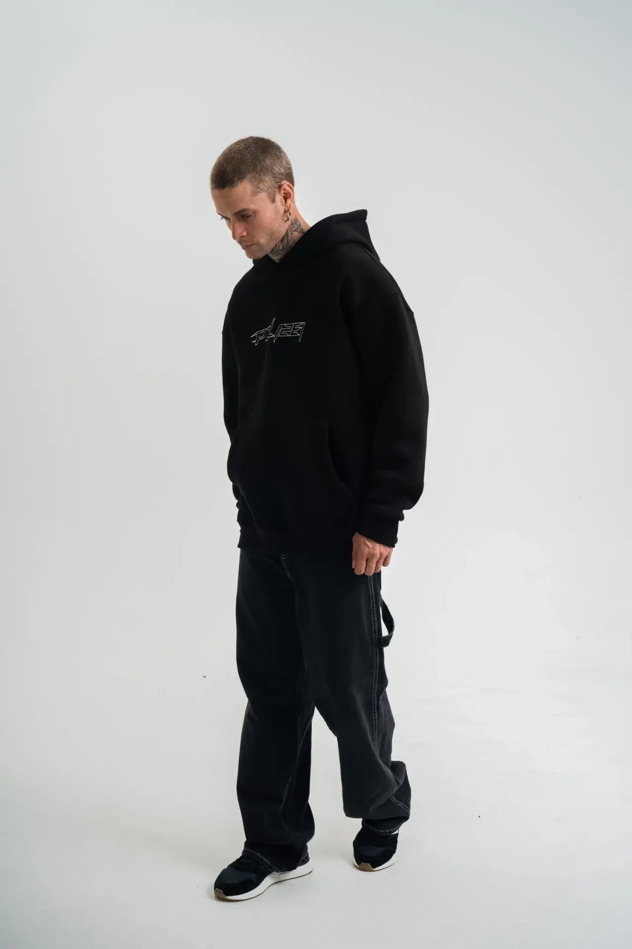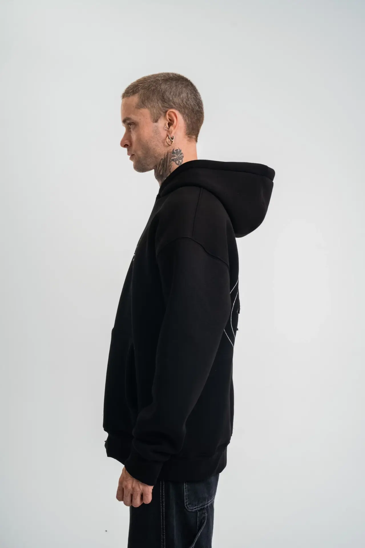 Unisex Üç İplik Kapşonlu Nakışlı SweatShirt - Siyah