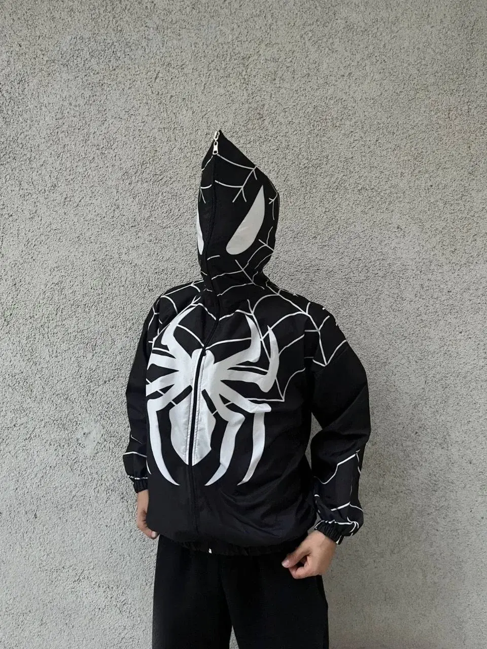 Unisex Uzun Kollu Kapşonlu Rüzgarlik - Siyah