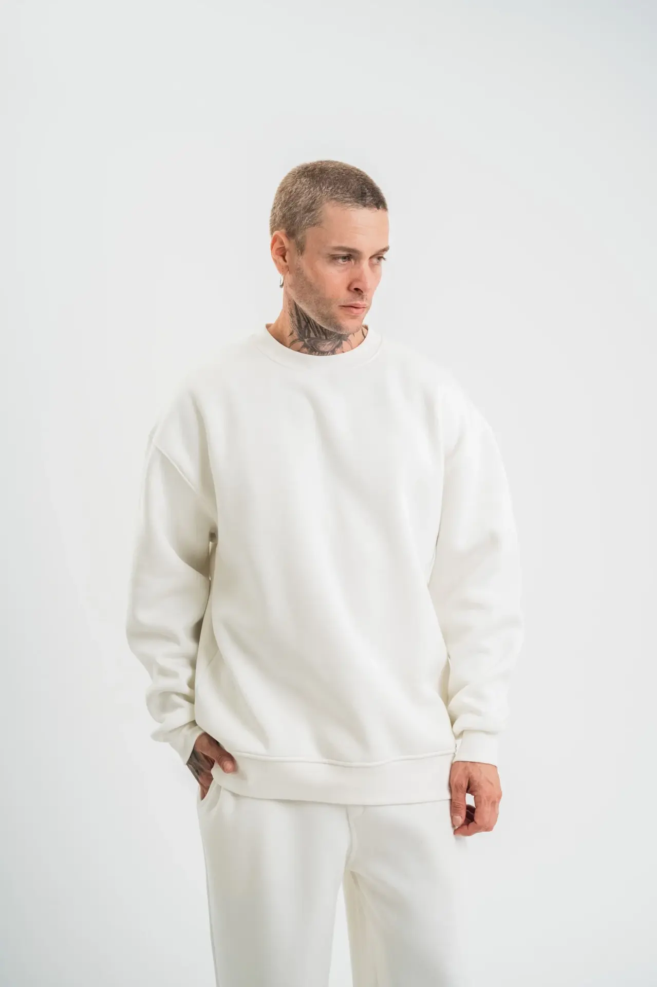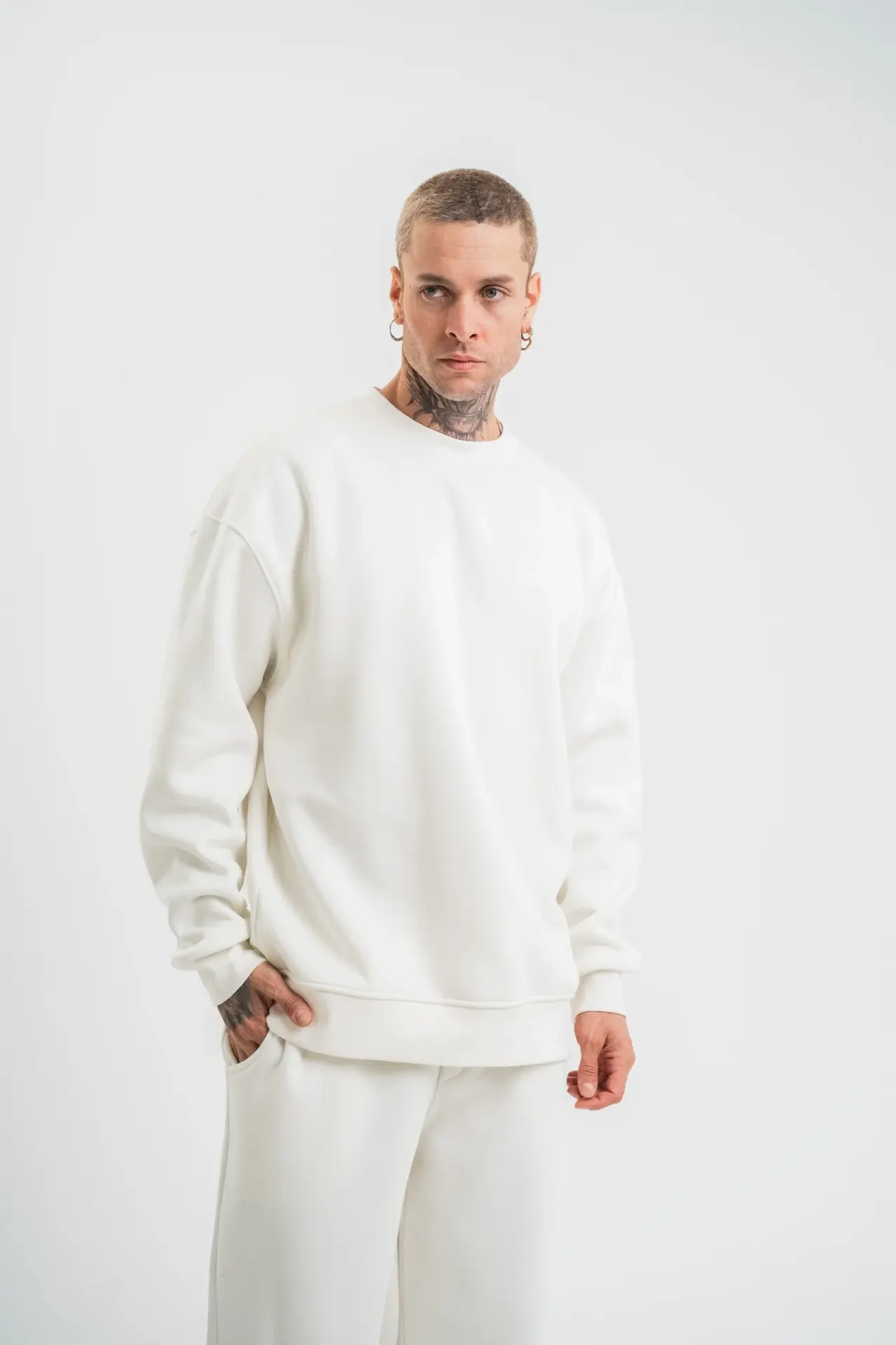 Uzun Kol Bisiklet Yaka Basic SweatShirt - Beyaz