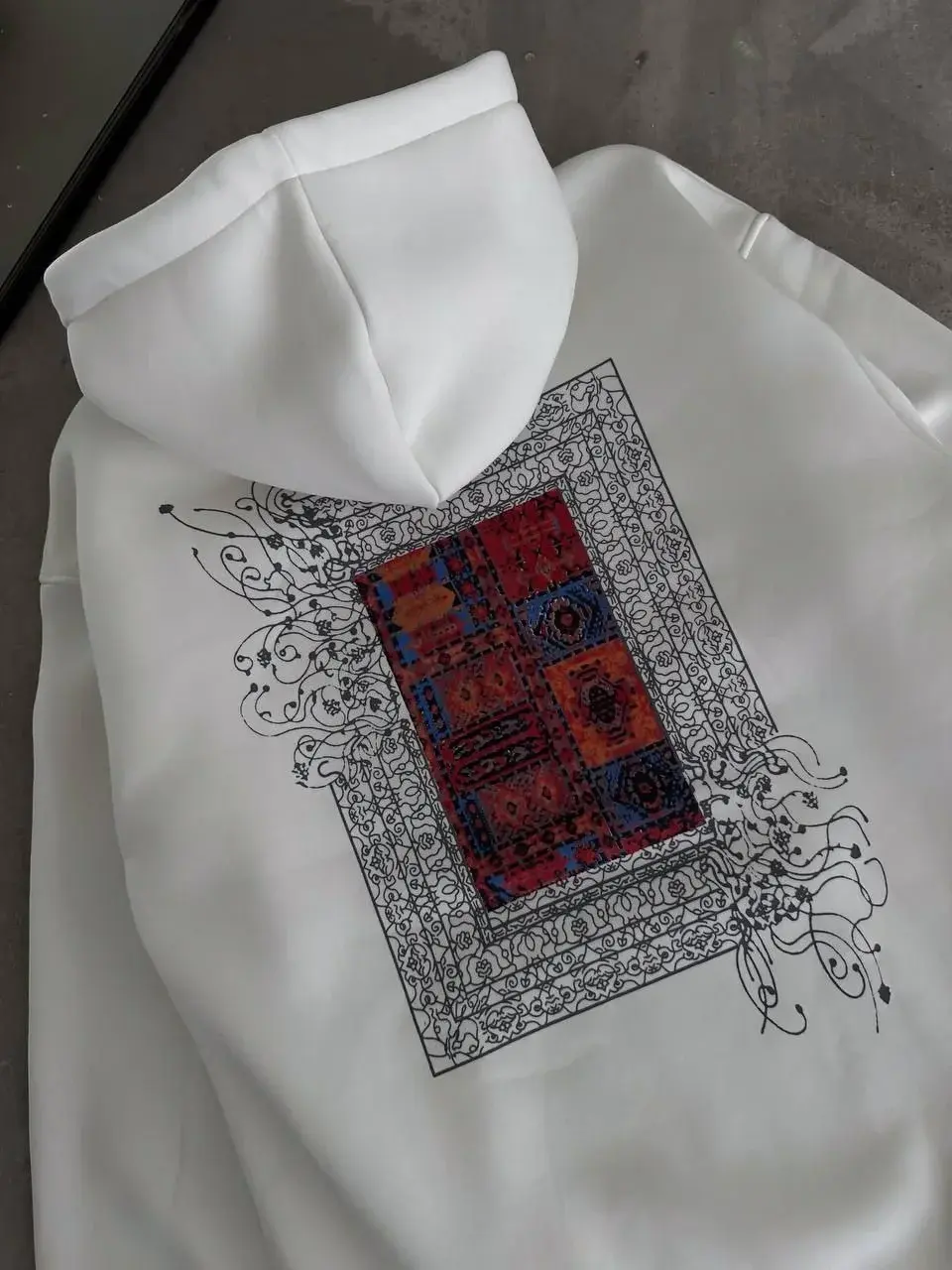 Uzun Kol Kapüşonlu Ön Ve Arka Baskılı SweatShirt - Beyaz