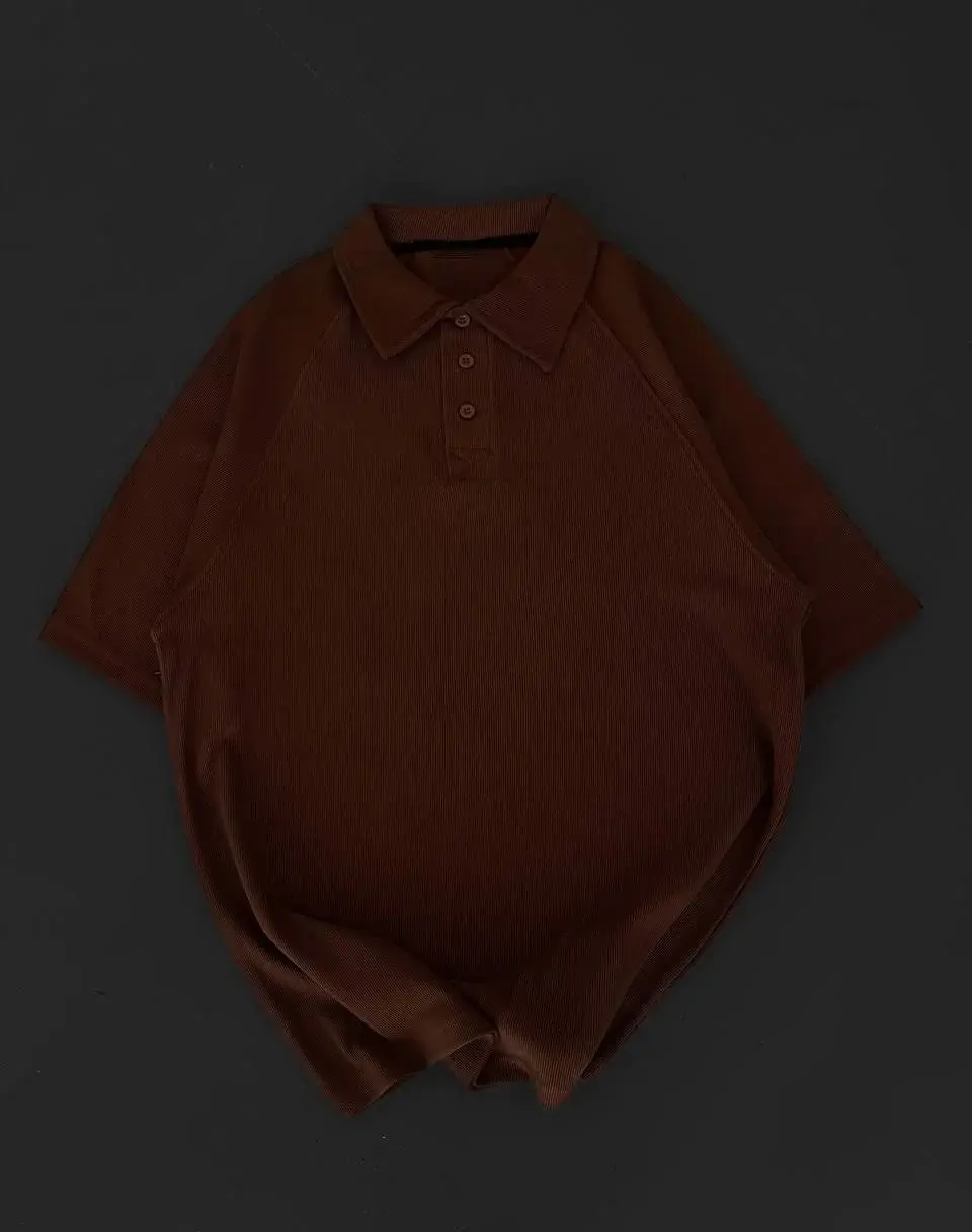 Yakalı Patlı Kısa Kol T-shirt - Kahverengi